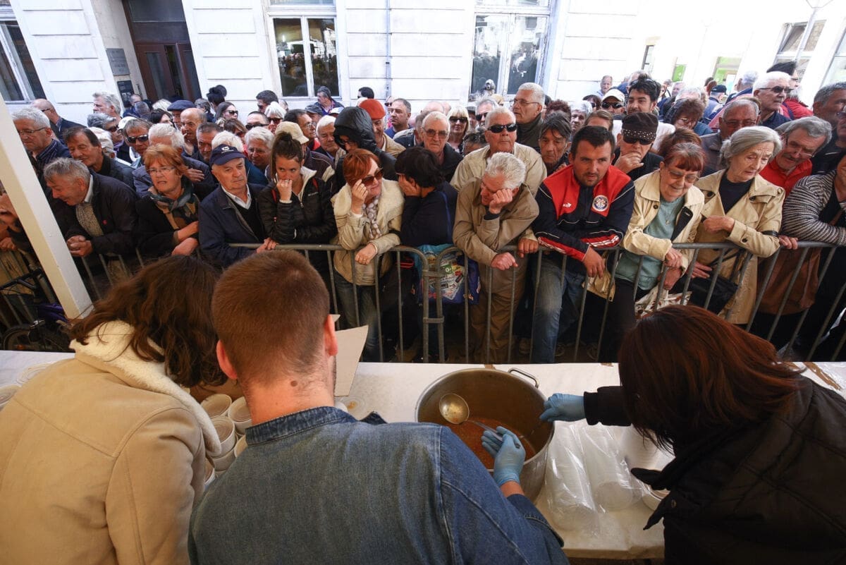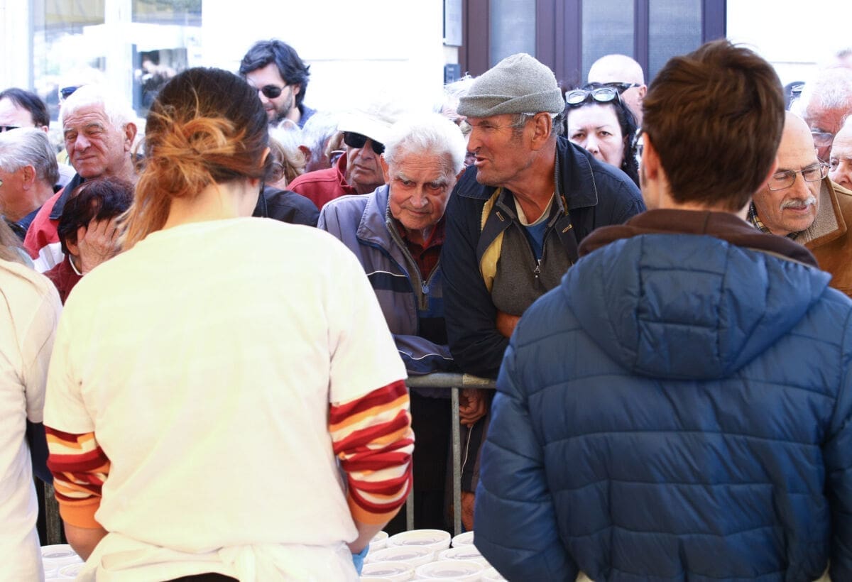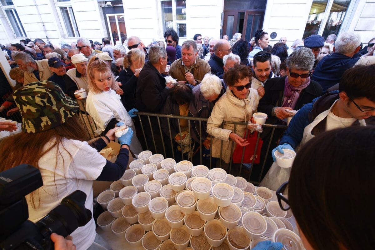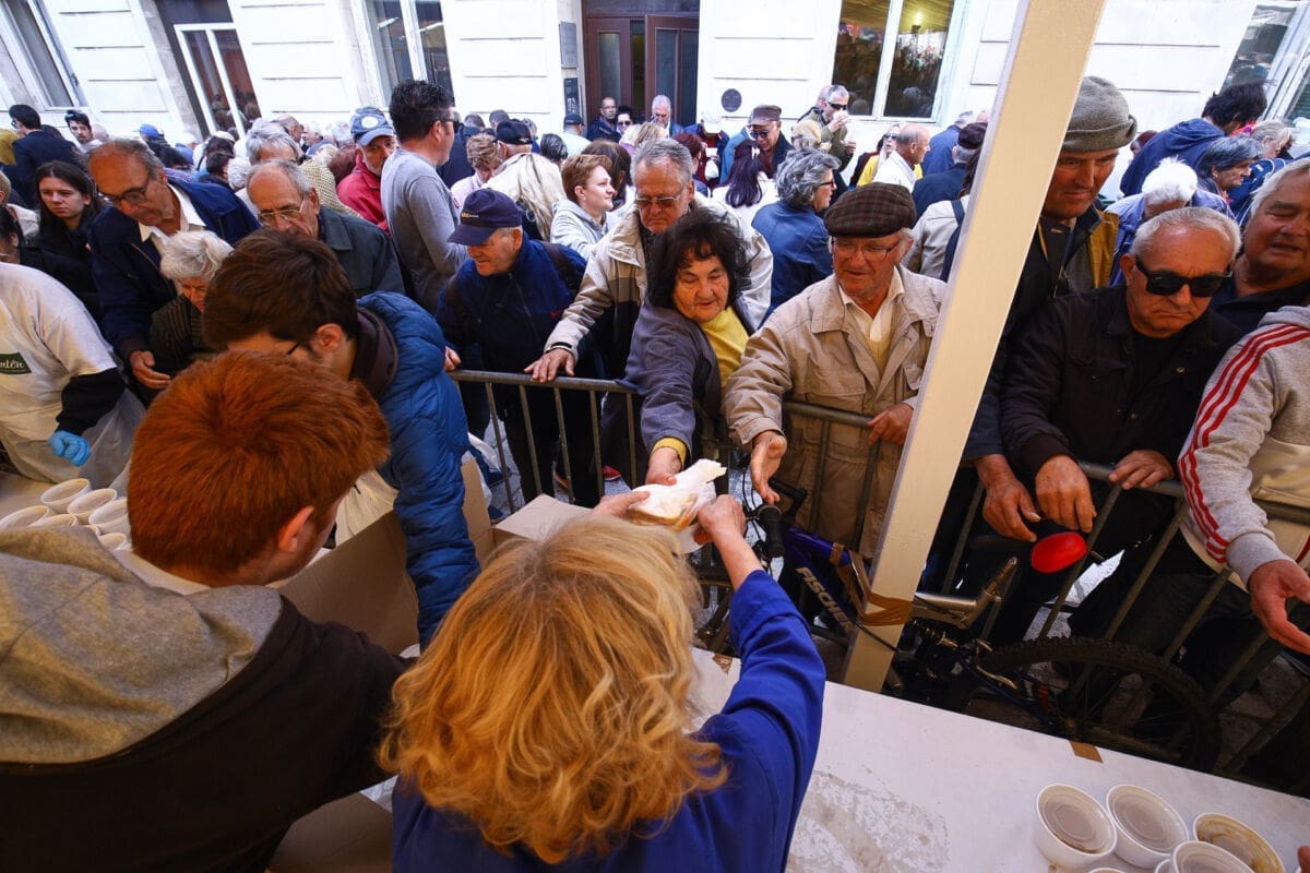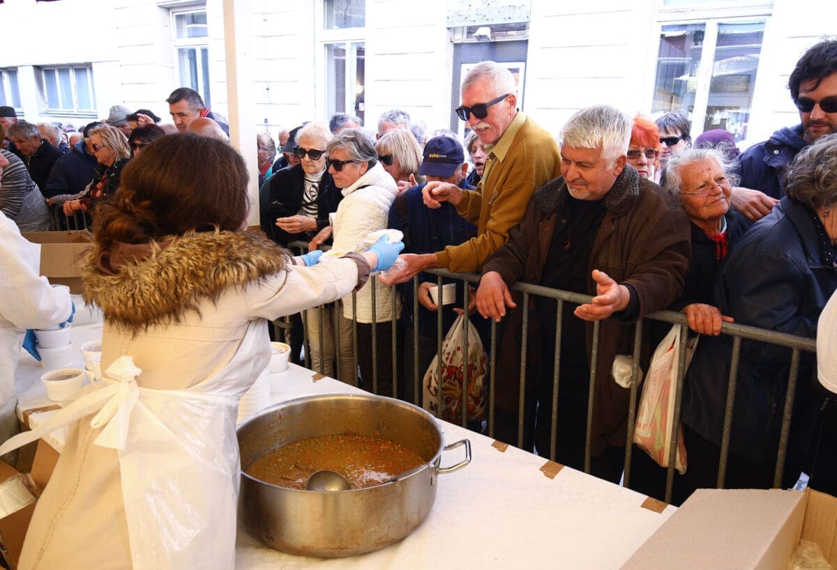 Na splitskoj Peškariji je oko 12 sati počela tradicionalna podjela oko pet tisuća porcija janjetine s bižima.