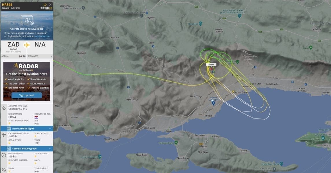 Ovdje možete vidjeti kretanje dvaju kanadera zabilježeno na stranici Flightradar.