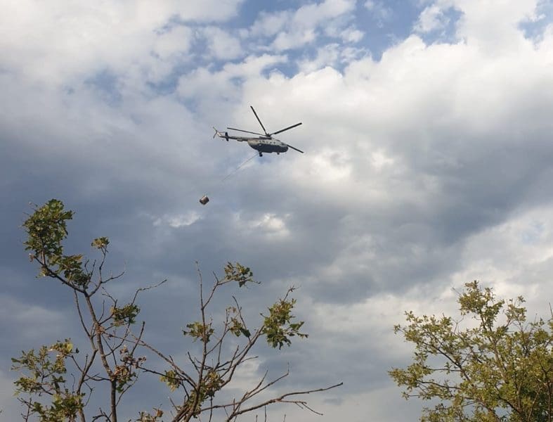 Na terenu su sve zemaljske i zračne snage. Vatrogascima iz Dicma u pomoć su stigle kolege iz Trilja, Sinja i Dugopolja te dva helikoptera.