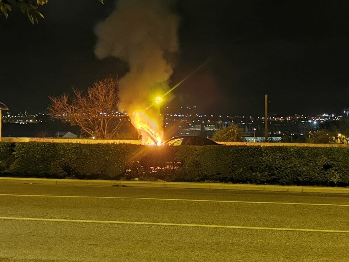 Oko 20 sati u Ulici Domovinskog rata u Splitu (kod garaža Prometa Split) planuo je osobni automobil.