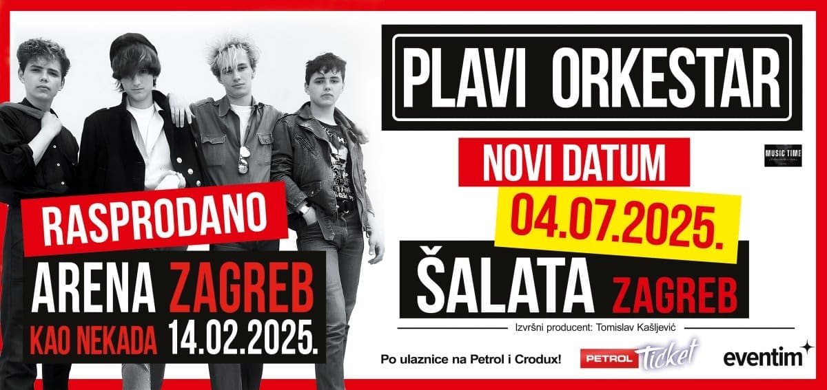 Plavi orkestar, legendarni bend koji je obilježio glazbenu scenu 80-ih i 90-ih, nastavlja nizati povijesne trenutke! Nakon što su ulaznice za koncert u Areni Zagreb za Valentinovo 2025. planule u rekordnom roku, oduševljeni odazivom publike najavili su svoj drugi koncert u Zagrebu, ovog puta veliki open-air spektakl na Šalati u petak, 4. srpnja 2025.