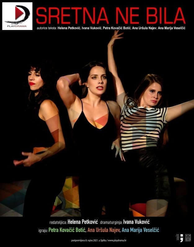 Naslov „Sretna ne bila“ jedna je od grotesknijih kletvi iz pop-asortimana domaćih stihoklepaca. Međutim, komad kojemu se toliko smijemo nije nastao ni iz čega. Stvarnost vremena u kojem djeluju autorice predstave i dalje ostavlja prostor tomu da se u vlastitoj nemoći, prikazujući sav glib državnog nemara i društva krojena po mjeri muškarca, barem od srca nasmijemo – i sebi u lice.