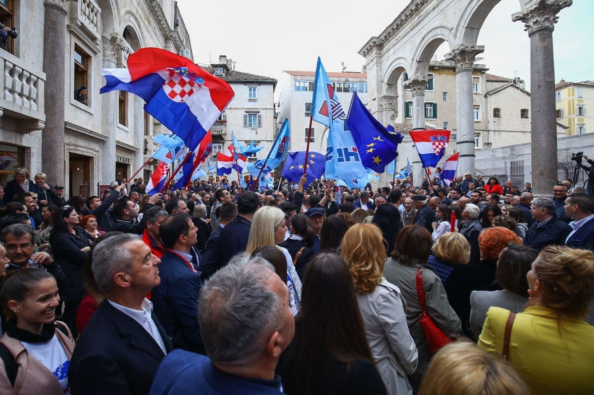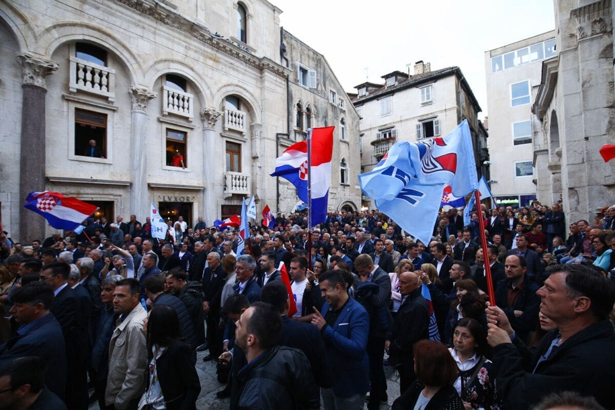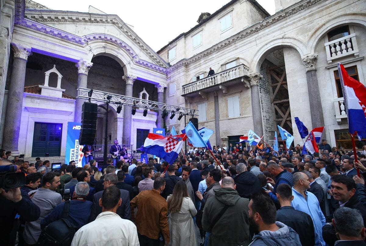 U tijeku je predizborni skup HDZ-a na punom splitskom Peristilu. Na skupu će biti predstavljena lista HDZ-a za izbor zastupnika u Europski parlament i Program "Hrvatska za generacije", a okupljenima će se obratiti i predsjednik HDZ-a Andrej Plenković.