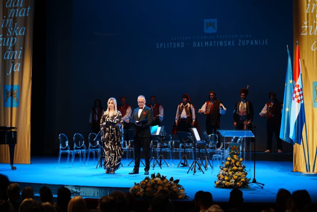 Sjednica je počela izvođenjem himni. Hrvatsku himnu, a zatim onu Splitsko-dalmatinske županije izveo je Marko Pecotić Peco, uz pratnju Danire Ipavec.