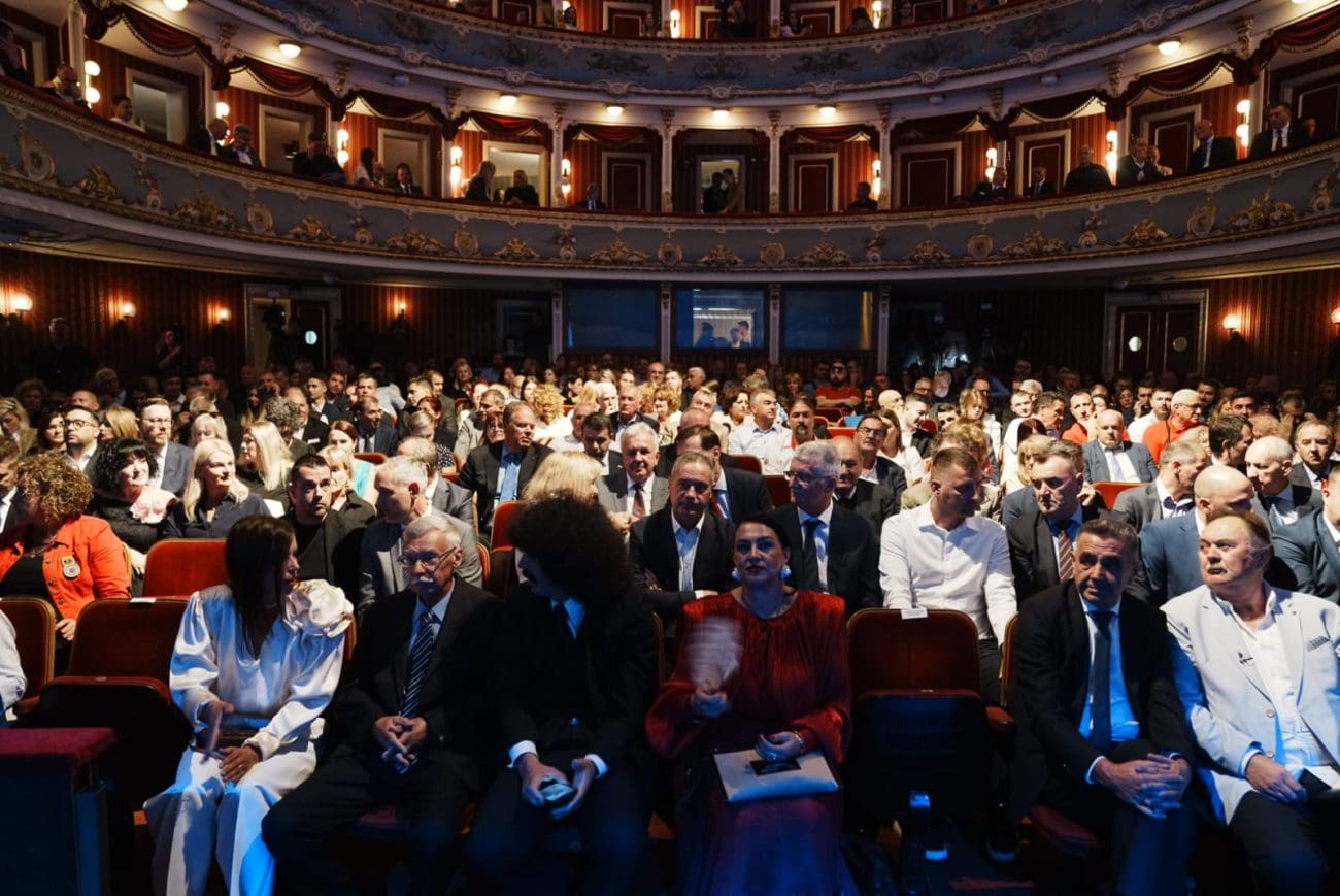 U HNK Split stigli su brojni visoki uzvanici. Tu je župan Blaženko Boban, predsjednik ŽS Mate Šimundić, vijećnici, izaslanik Hrvatskog Sabora Ante Sanader, ministrica Nataša Mikuš Žigman, ministar Tonči Glavina, rektor Sveučilišta u Splitu Dragan Ljutić, župan Dubrovačko-neretvanske županije, sisačko-moslavački župan, gradonačelnik Splita Tomislav Šuta i njegovi zamjenici, saborski zastupnici Danica Baričević i Andro Krstulović Opara, državne tajnice Zrinka Mužinić Bikić i Vedrana Šimundža Nikolić te brojni drugi.