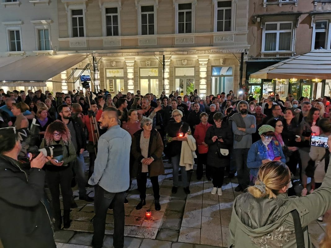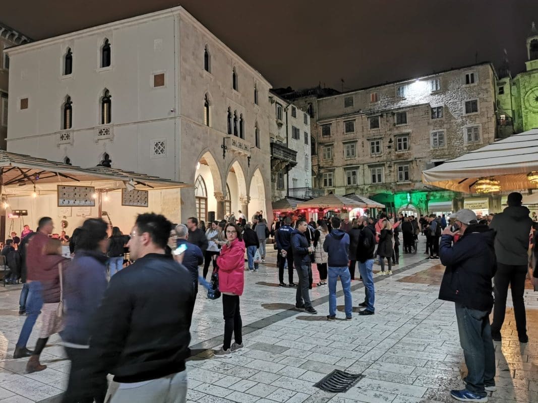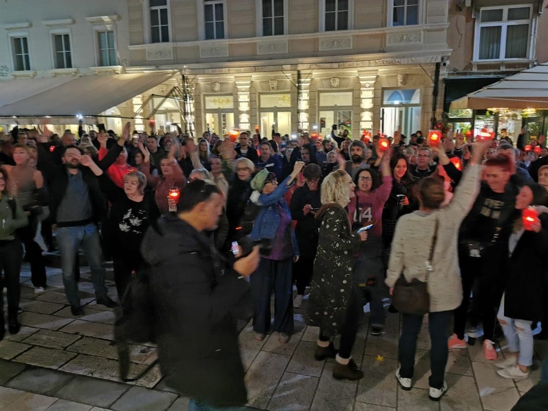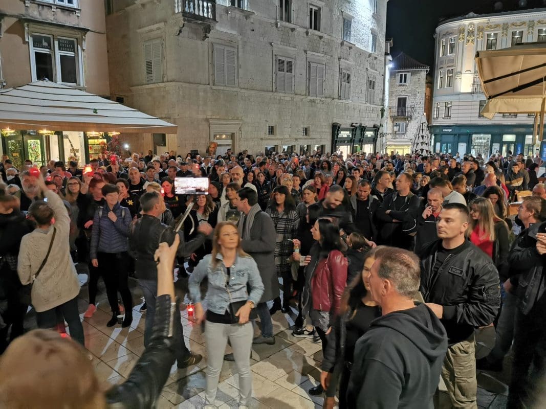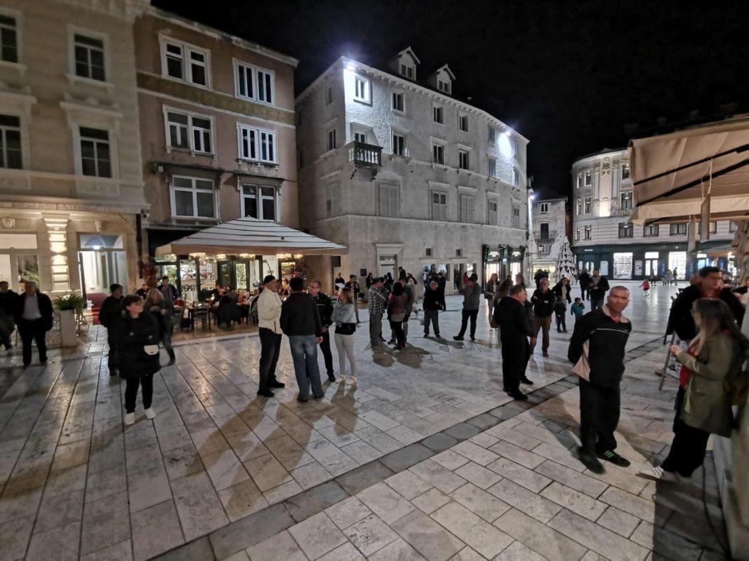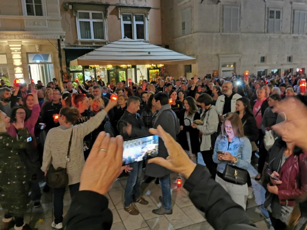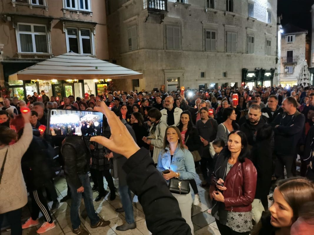 Veliki broj građana oko 20 sati tradicionalno se okupio na splitskom Narodnom trgu (Pjaci) i u znak protesta ponovno su donijeli lampione.