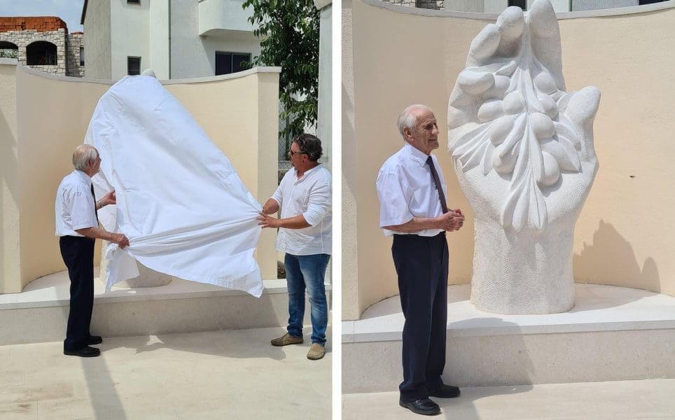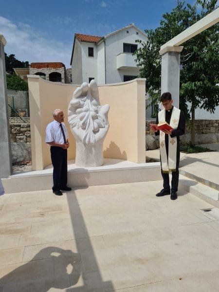 "Danas smo u mjesnom parku otvorili i blagoslovili spomenik maslini, umjetničkog naziva “PLOD ŽIVOTA”. Spomenik je umjetničko djelo akademskog kipara Mate Rosčića.
