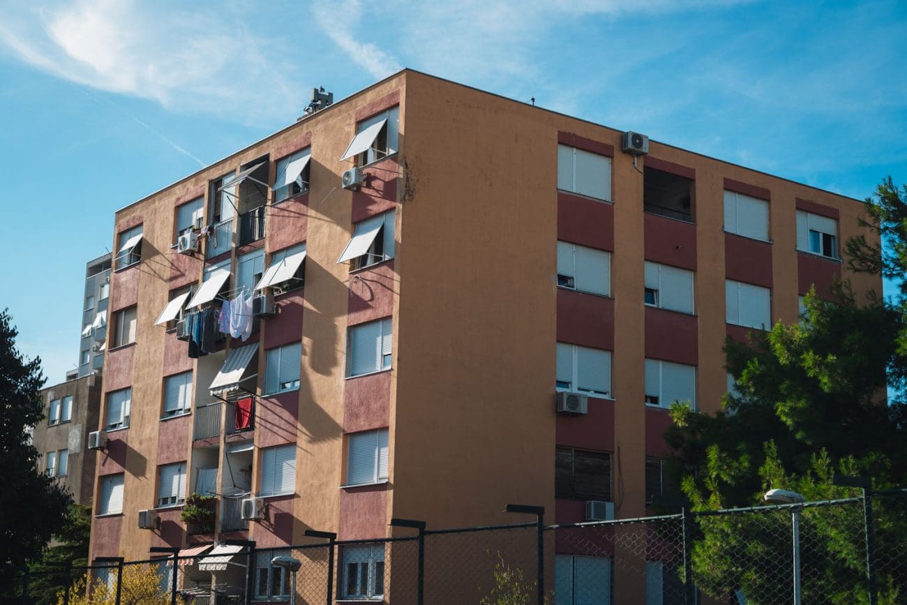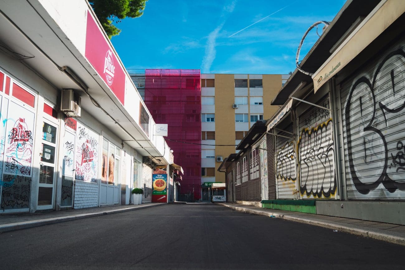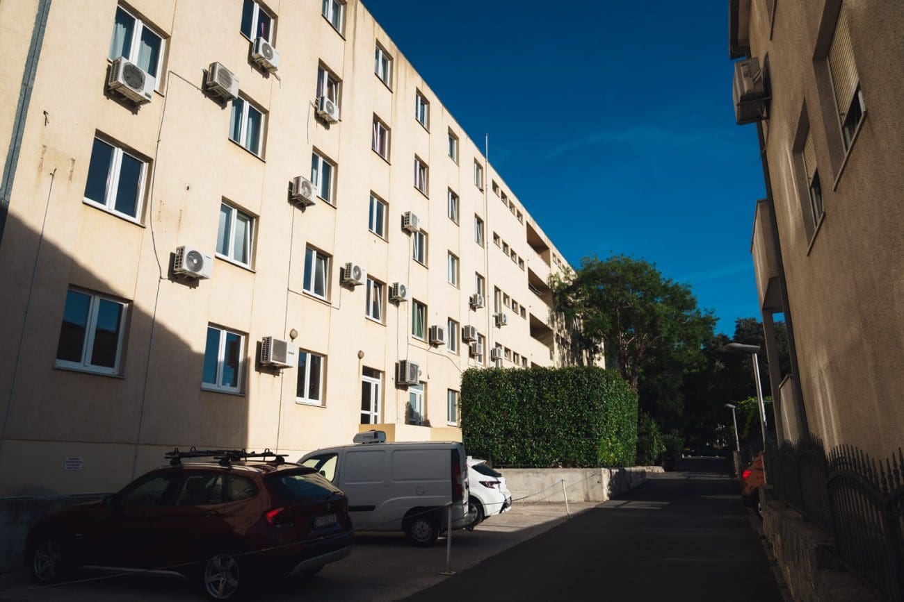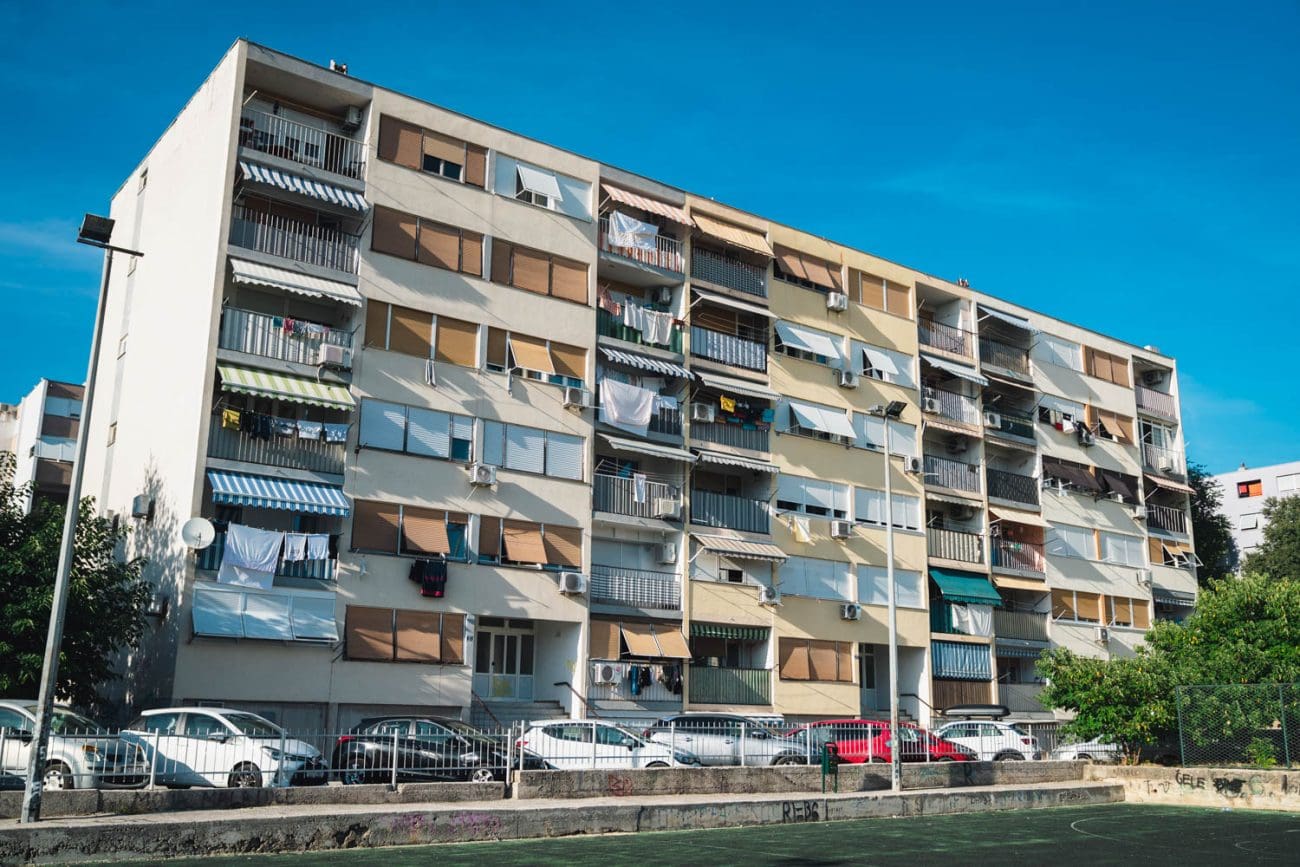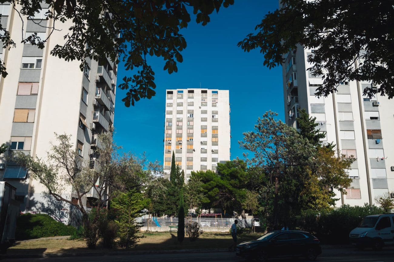 Slikano sa stambenih blokova uz bivšu ulicu Proleterskih brigada (danas zgrade nasuprot Albatrosa).