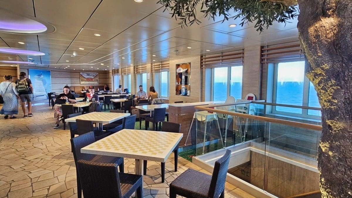 Na istoj etaži je i self-service restoran Maslina (Olive), koji je otvoren tijekom cijelog putovanja, a satelitski internet dostupan je za sve.