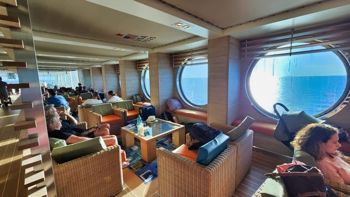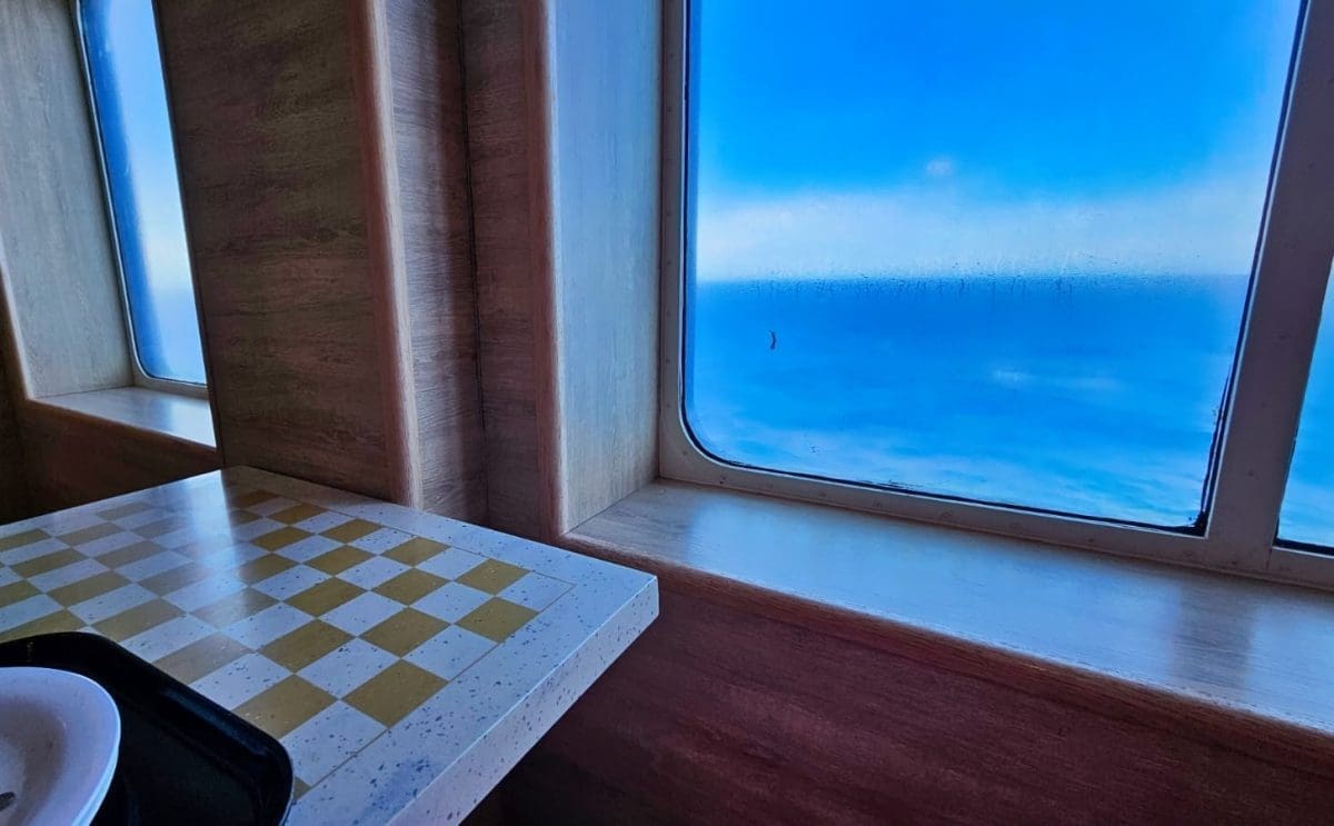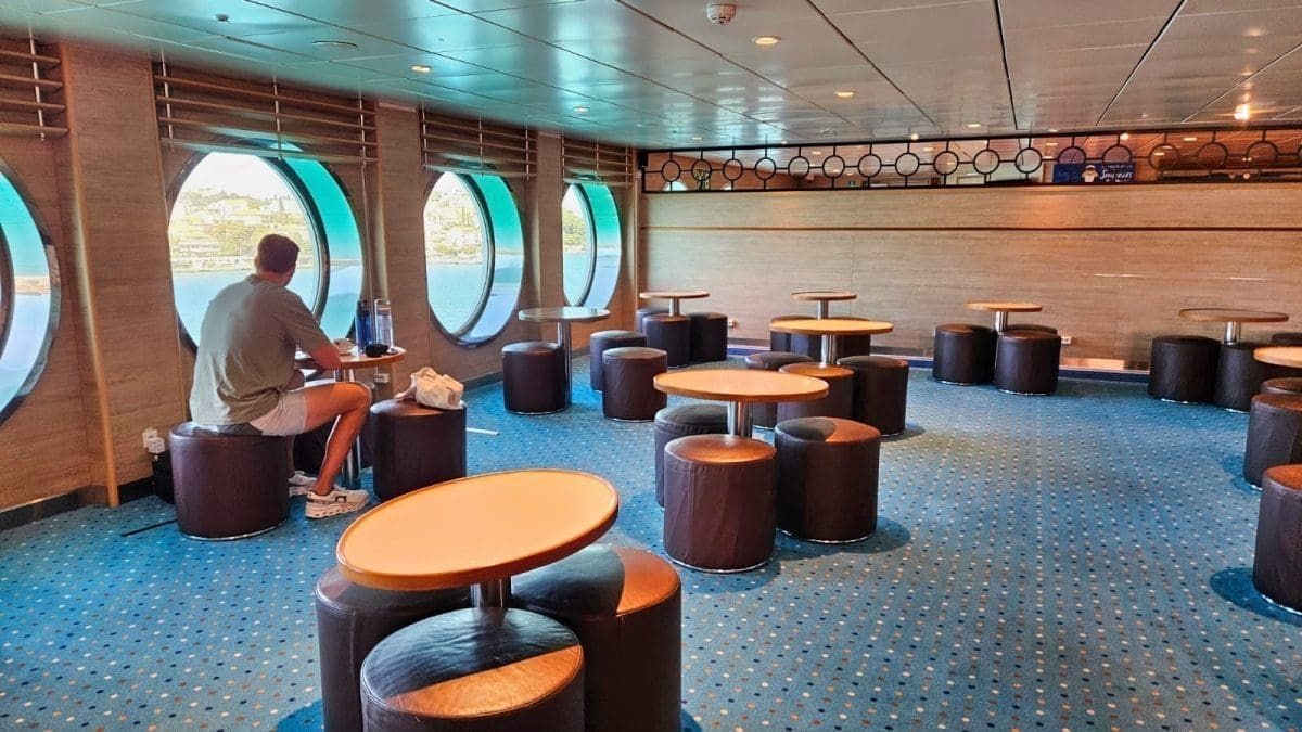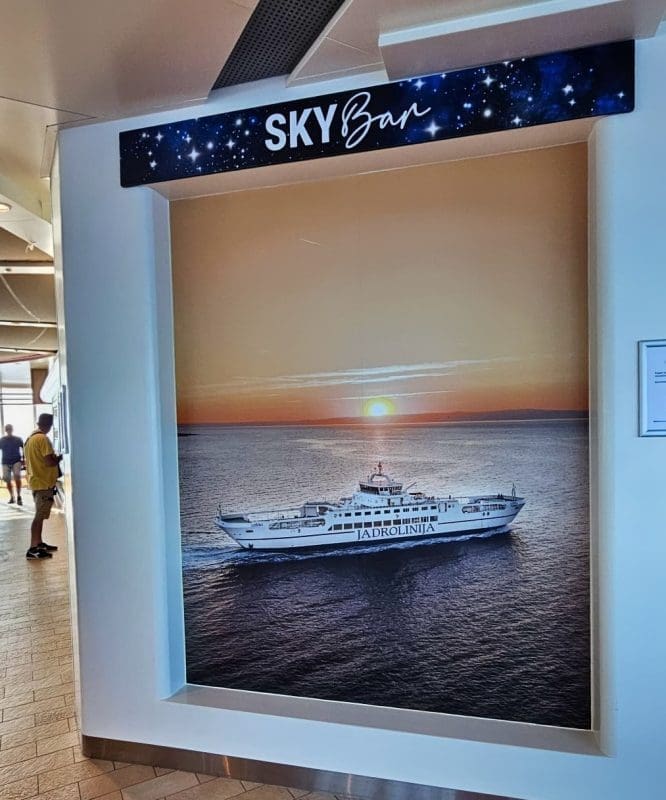 "Ovakve prizore iz Sky bara nemaju čak ni kruzeri na tako niskim palubama - kruzer to ima, ali na otvorenim, gornjim palubama. Ali, da ima bar ili restoran, u kojem sjedite uz sami prozor, nema. Na kruzerima su stolovi odvojeni od prozora barem jedan metar, tako da se pokraj prozora ne može sjediti".