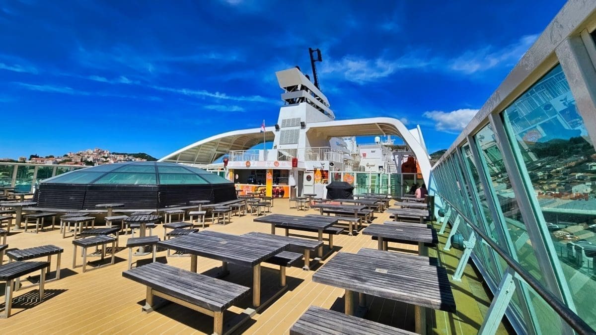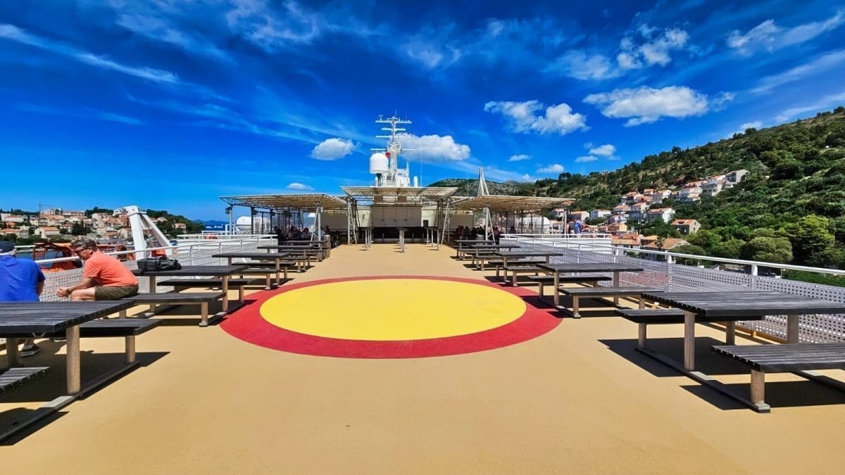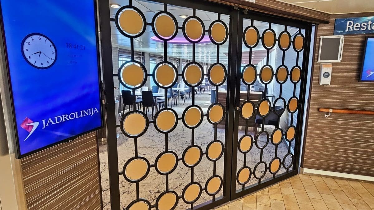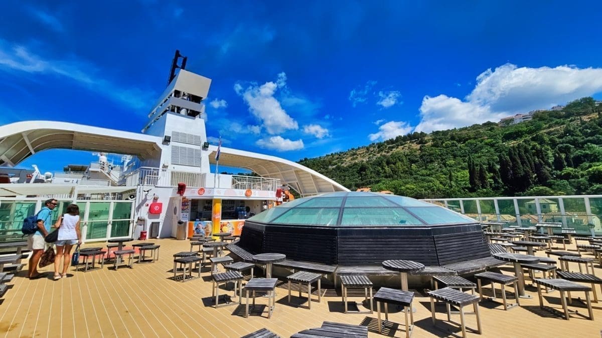 'Dalmacija' ima sedam paluba, odnosno katova, pa krenimo redom. Na 0 se nalazi makina, 1 je prva garaža, 2 je druga platforma garaža, treća paluba je ugostiteljski dio od prove do krme. Na 4. palubi je grill bar i otvorene bočne palube, a jedan dio 5. palube je tihi, business prostor za rad u tišini. Također, tu je i jedna prostorija koja se može zatvoriti za grupe koje to zatraže. Paluba 6 je vanjska, a 7. je Sun Deck, pilotsko sletište. Za boravak će 7. paluba biti otvorena od sljedeće godine – tu će se nalaziti Sun bar. Zanimljiva je i informacija da posljednja paluba nije korištena gotovo 20 godina zbog hladnoće, snijega i leda.