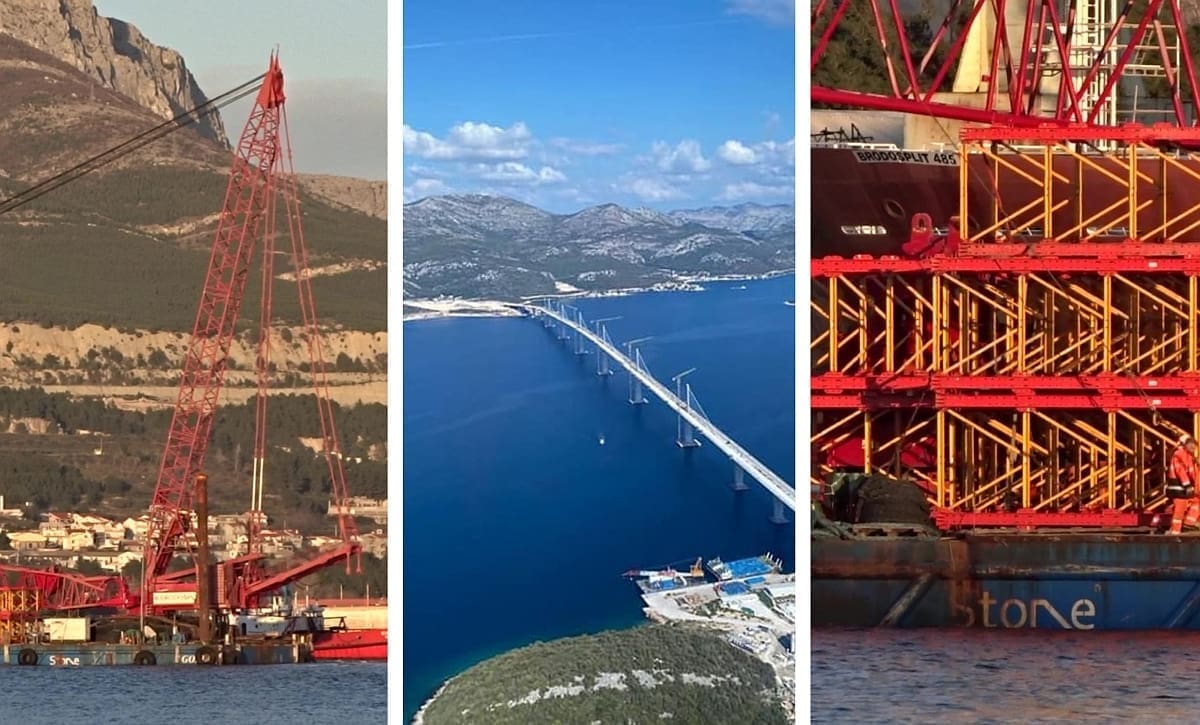 Počeo je najavljeni transport segmenata mosta Ston, pristupne ceste Pelješkom mostu. Most dug 485 metara iznad stonskog zaljeva spajat će dva tunela.