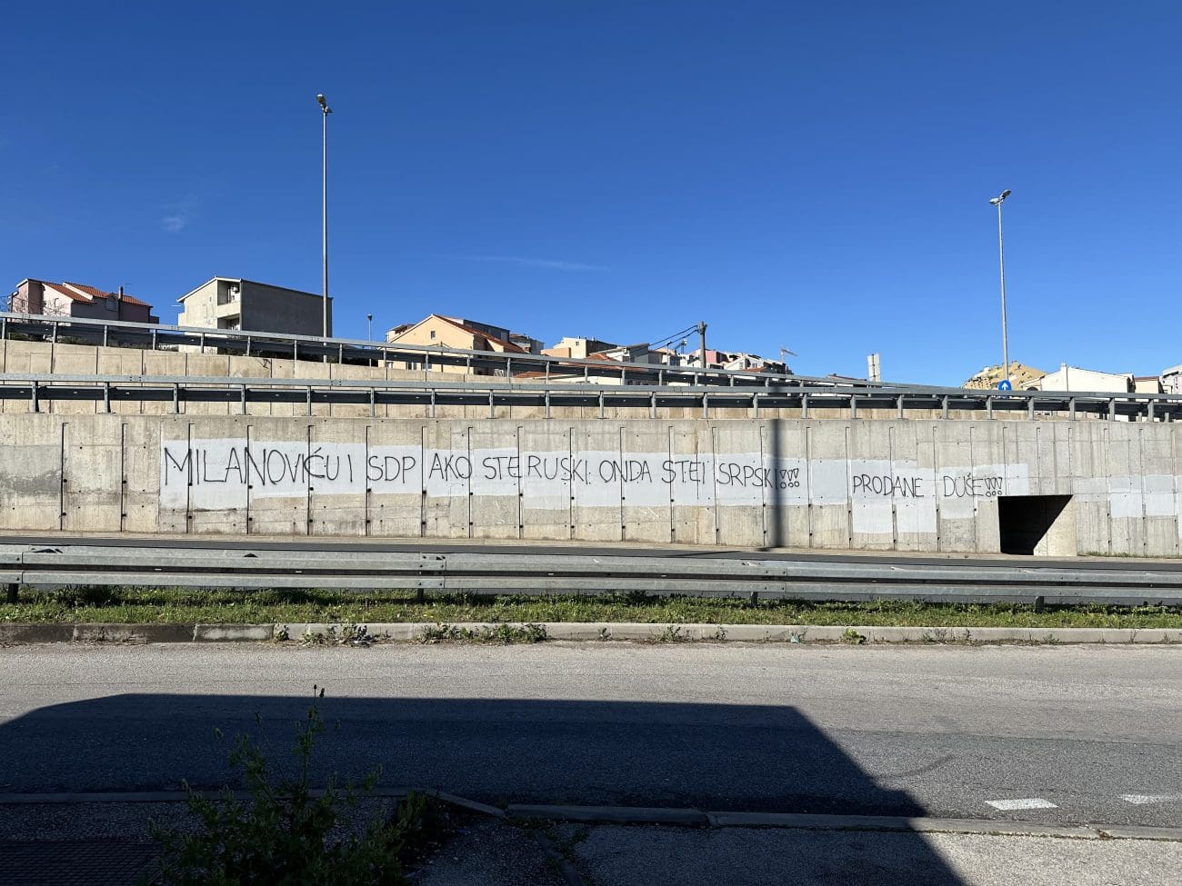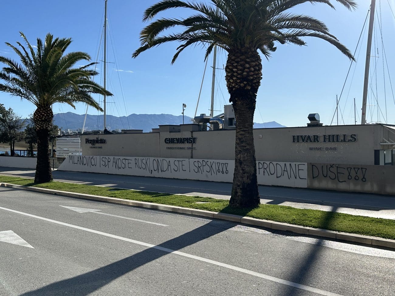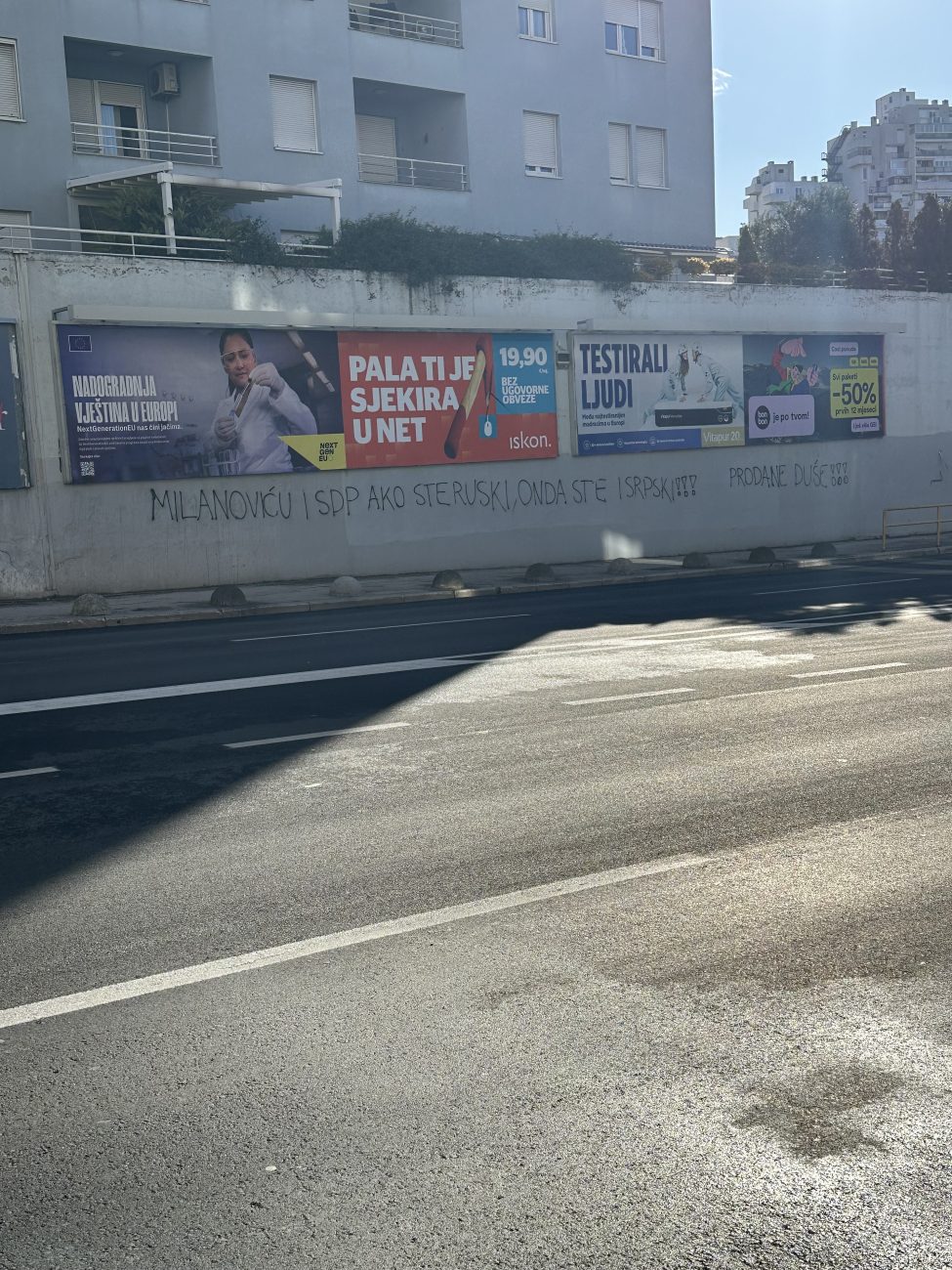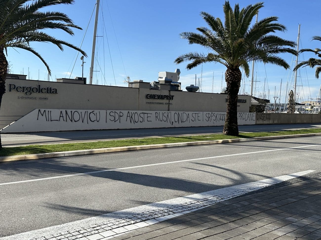 "Milanoviću i SDP, ako ste ruski onda ste i srpski" piše na grafitima, uz komentar "Prodane duše".
