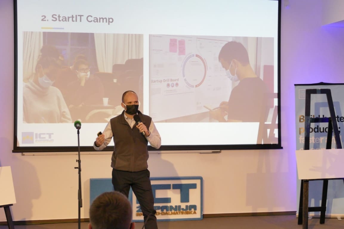 Mikrofon je preuzeo Damir Brčić, alfa i omega projekta ICT Županija zahvalivši se mentorima, uspješnim IT poduzetnicima koji su bili na raspolaganja svim polaznicima, zahvalio se Svenu Gotovcu direktoru Tehnološkog parka i PICS-u na FESB-u te dekanu FESB-a Srđanu Podrugu koji im je ustupio prostor u kojoj se smjestila baza StartIT Akademije.
