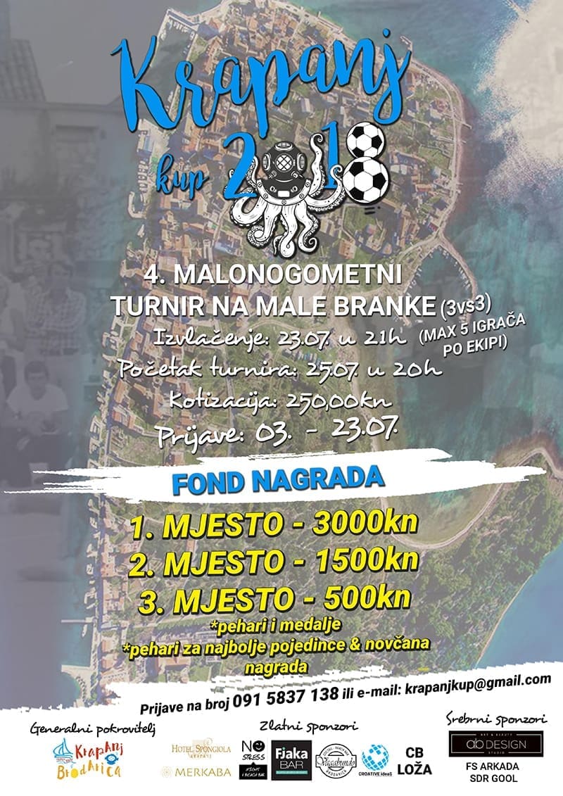 Prijave za turnir vrše se na broj 091 5837 138 ili email krapanjkup@gmail.com do dana izvlačenja, 23. srpnja u 21 sat. Nagradni fond iznosi 5.000 kuna. Detalje pogledajte na plakatu u fotogaleriji.