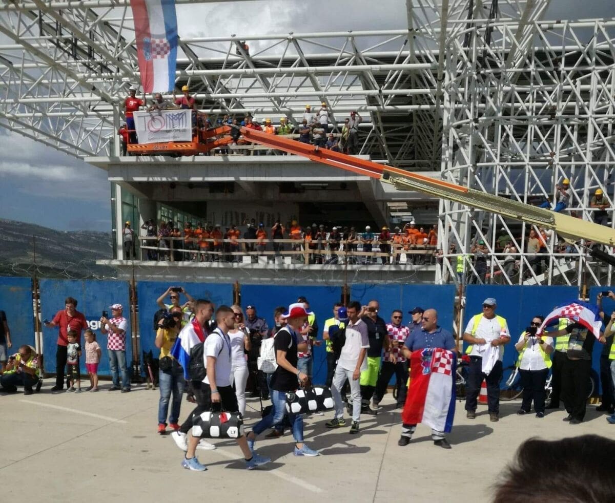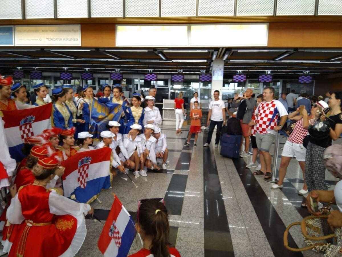 16:20- Vatreni su sletjeli u splitsku zračnu luku. Dočekani su sa stilom uz mažoretkinje, vatrogasce...