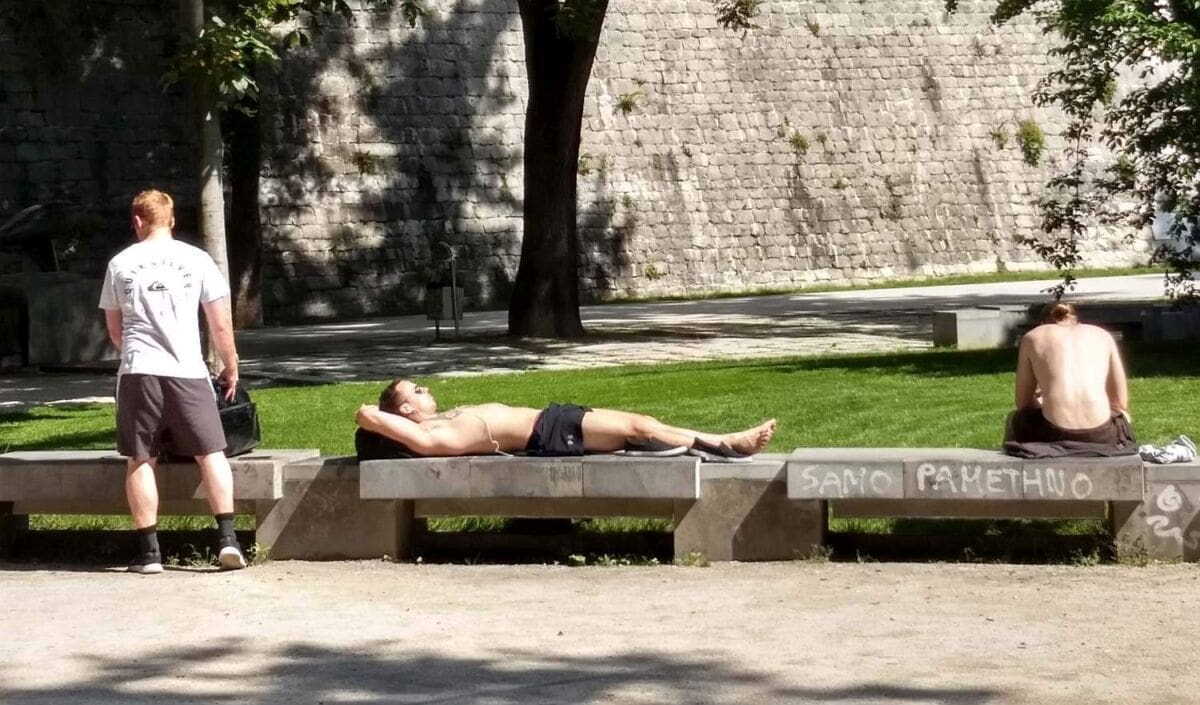 Neki su prvi vrlo topao dan iskoristili za sunčanje, a kako se vidi na fotografijama koje smo danas snimili u gradu, ima i onih koji nisu birali lokaciju gdje će upijati sada već jake zrake sunca.