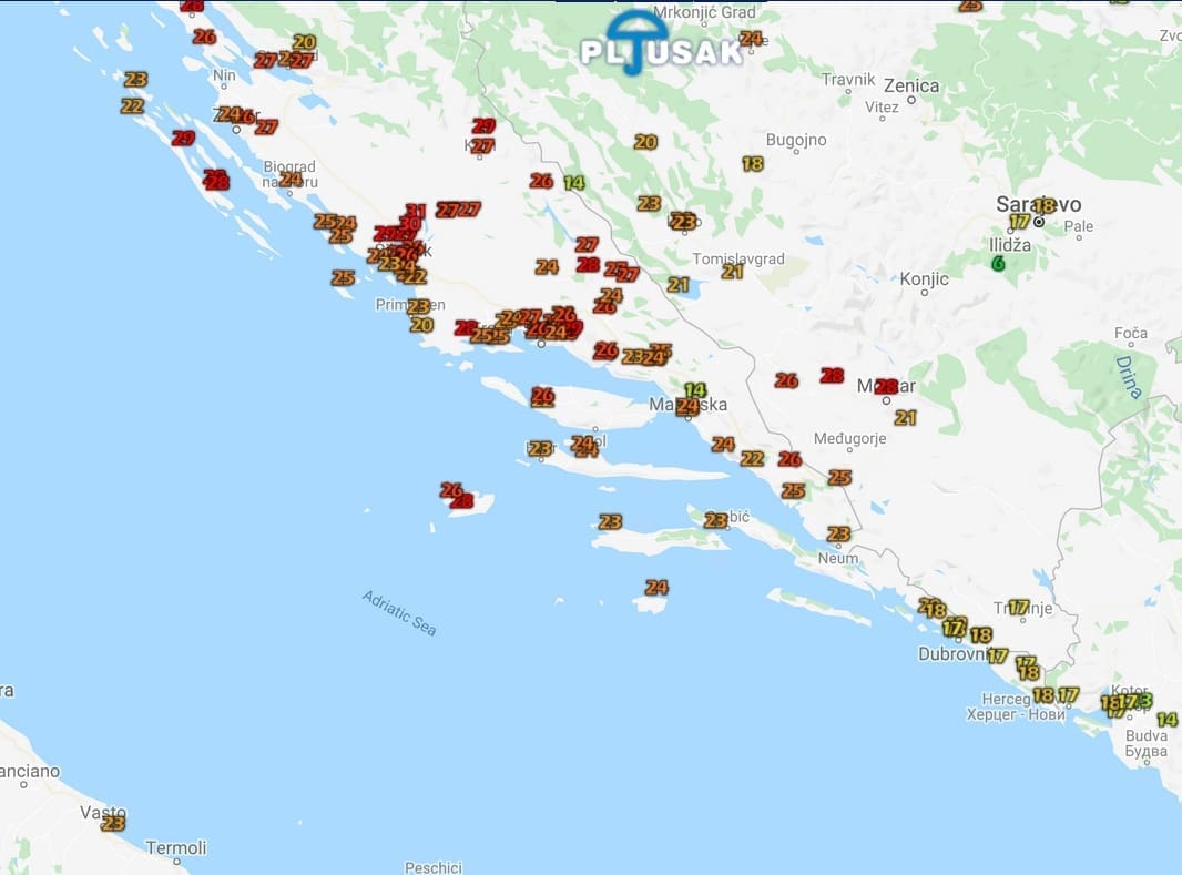 U nekim dijelovima Zagore i sjeverne Dalmacije temperatura je danas dosegla i 28°C. Zanimljivo, kiša je danas padala samo na krajnjem jugu, na području Dubrovnika i Konavala, gdje se i danas zadržalo hladno, često s temperaturama ispod 20 stupnjeva. U Konavlima je do 16 sati palo 10 do 17 litara kiše po kvadratnom metru.