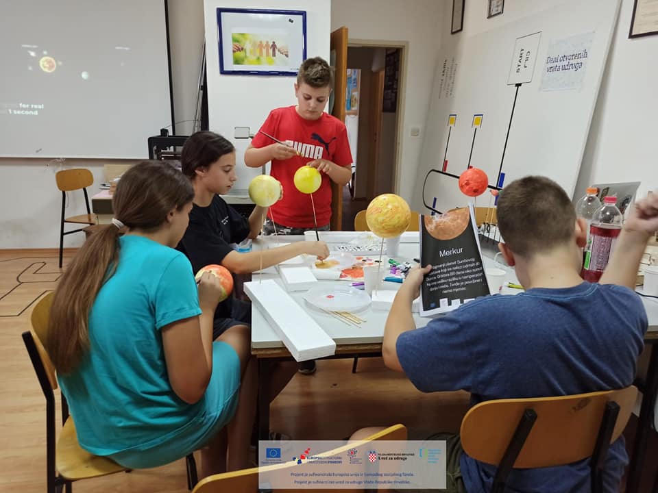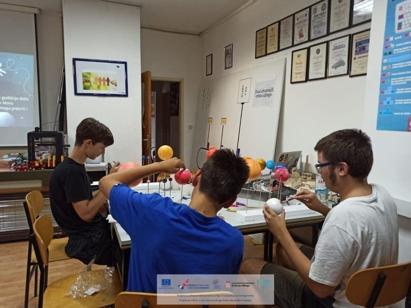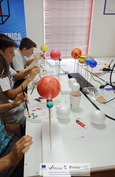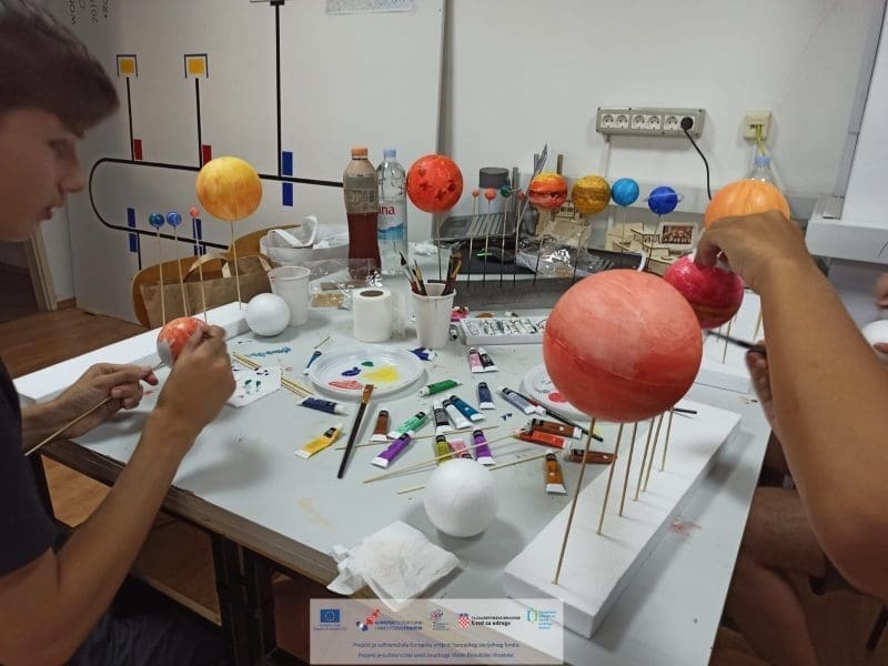 Polaznici su tijekom jučerašnjih radionica izrađivali vlastite makete Sunčevog sustava, te su se kroz izradu upoznavali s karakteristikama različitih planeta i samog sustava. Radionice organizira Zajednica tehničke kulture grada Splita u partnerstvu sa Centrom tehničke kulture Rijeka u sklopu projekta STEM(AJMO!). Na projektu sudjeluje još partnera iz raznih županija, a cilj projekta je razviti kapacitete partnerskih organizacija za provedbu programa na području popularizacije STEM-a te povećati broj aktivnosti i sadržaja usmjerenih na popularizaciju STEM-a među djecom, mladim i građanima.