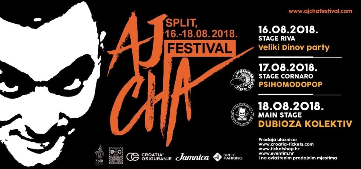Festival će zatvoriti Dubioza Kolektiv velikim koncertom na Starom Hajdukovom igralištu u subotu 18. kolovoza! Dubioza Kolektiv već niz godina oduševljava publiku iz regije i cijelog svijeta. Obradom Dvornikove pjesme 'Treba mi zraka' otvorili su si vrata ka Aj Cha festivalu te će publika zajedno s njima proslaviti veliko stvaralaštvo Dina Dvornika. Njihova glazba odiše punkom, reggaeom, dubom, skaom i rockom, koji savršeno ukomponirani čine jedinstvenu glazbu koja nosi snažne političke i životne poruke. Kao najuspješniji bend s Balkana u zadnjih 20 godina, do sada su nastupili i oduševili publiku na brojnim festivalima diljem Europe i svijeta, promovirajući kulturu ovih prostora. Koncert počinje u 22 sata, a prije njih na pozornici će zasvirati Rezerve, makarski bend koji je u kratkom roku publiku oduševio pjesmama poput "Madona", "Ne voli, ne voli", "Potoci suza"... Ovaj energični rock'n'roll bend koji spaja romantično i tragično, pettyjevske rifove i ramonesovsku zaigranost prizivajući zvuk Novog Vala, a ponajviše splitskih Đavola, te beogradskih Idola i U škripcu, publiku će zagrijavati od 21 sat.