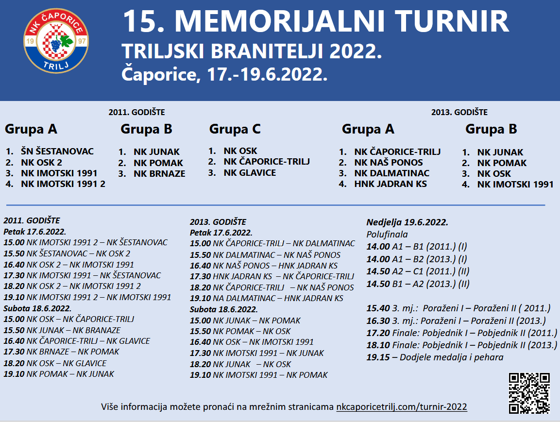 U Čaporicama, na Športsko rekreacijskom centru Zdenko Pavela-Cato, održat će se 15. memorijalni turnir ‘Triljski branitelji 2022’.