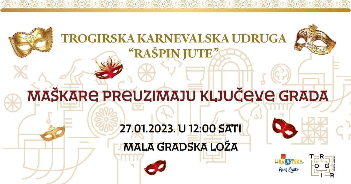 Karneval tradicionalno započinje preuzimanjem ključeva Grada koje će se održati 27.01.2023. u Maloj gradskoj loži (bivša ribarnica – na rivi) u 12:00h, zatim će se 17.02.2023. zabavljati djeca na Dječjim maškarama u 10:00h na Trgu Ivana Pavla ll, a 19.02.2023. u 15:00h pozivamo sve ljude dobre volje da nam se pridruže i budu maštoviti, duhoviti, kreativni, veseli i da se svi zajedno dobro zabavimo i budemo ono što želimo barem na jedan dan na još jednom Trogirskom karnevalu na Trgu Ivana Pavla ll", javljaju iz Turističke zajdnice Grada Trogira.