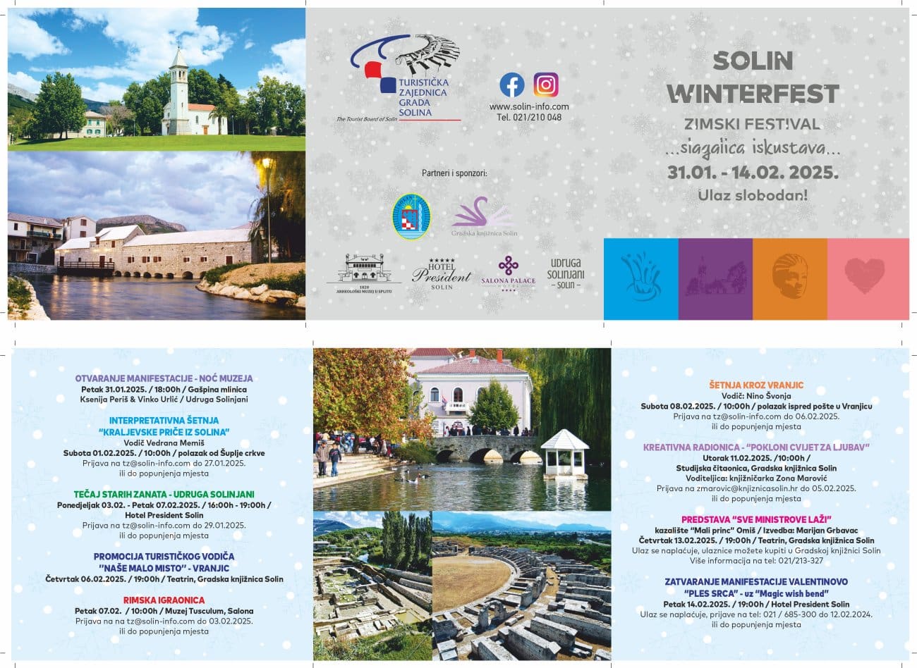 Zimski festival Solin Winterfest će se, u organizaciji TZ grada Solina u suradnji s gradom Solinom, Gradskom knjižnicom Solin, Arheološkim muzejom u Splitu, udrugom Solinjani i hotelom President te ostalim partnerima, održati od 31. 1. 2025. do 14. 2. 2025.