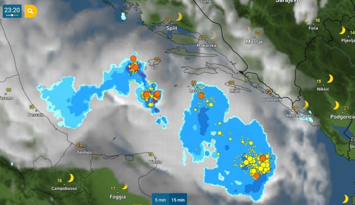 Sredinom noći nad otvorenim morem srednjeg i južnog Jadrana stvorila grmljavinska linija koja je već zahvatila pučinske otoke poput Lastova, te je stigla do Visa. Naši otoci ove godine bilježe rekordnu sušu tako da je aktualna promjena vremena "spas u posljednji trenutak".