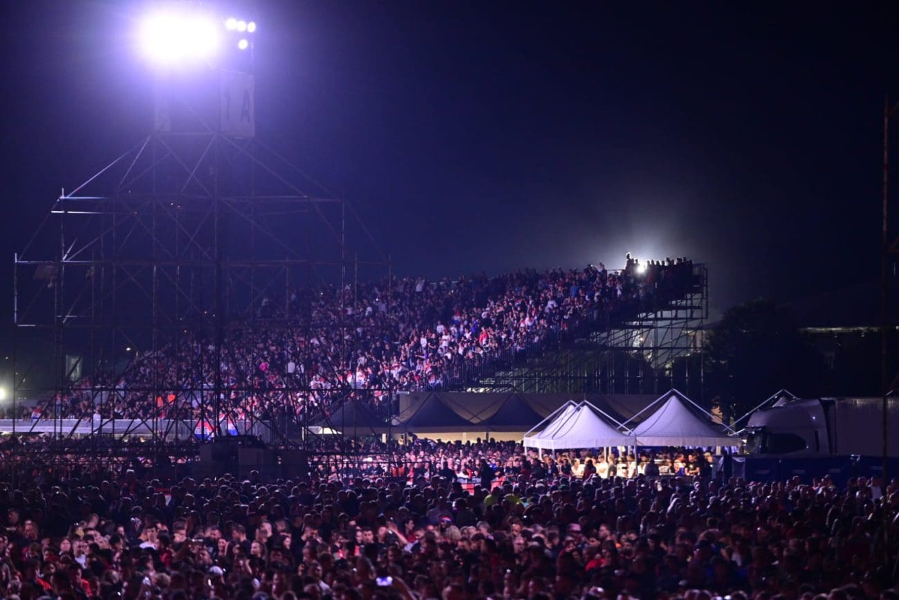Na sinjskom hipodromu večeras se održava jedan od najiščekivanijih glazbenih događaja godine – koncert Marka Perkovića Thompsona, na kojem se očekuje čak 150.000 posjetitelja. Iako je početak bio zakazan za 21 sat, više od sat vremena kasnije koncert još nije počeo, a atmosfera među okupljenima postaje sve napetija.