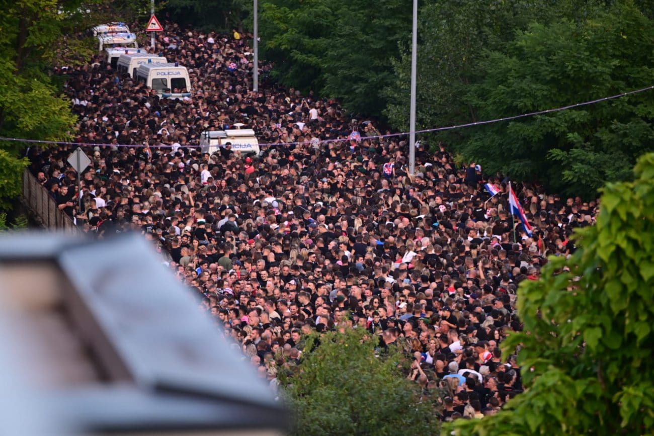 "Ljudi, molimo čuvajte jedni druge, dajte se desno prema gradu, prema gradu", poručio je muški glas, nastojeći usmjeriti masu i spriječiti moguće naguravanje ili ozljede.