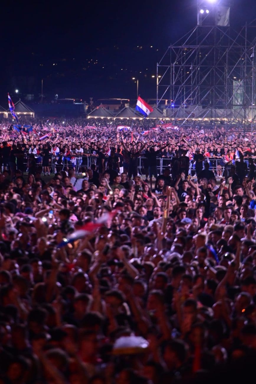 Već oko 20.000 ljudi nalazi se ispred glavnog prostora i pokušava pronaći svoje mjesto, dok organizatori putem razglasa mole publiku za strpljenje i suradnju.