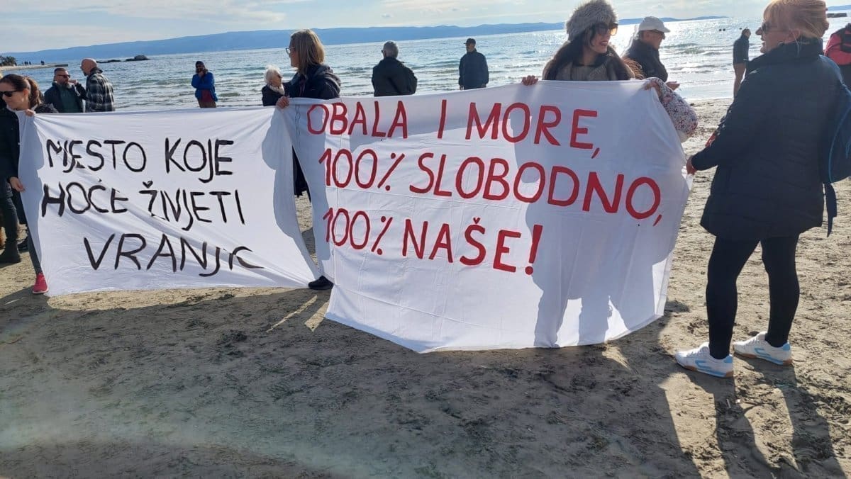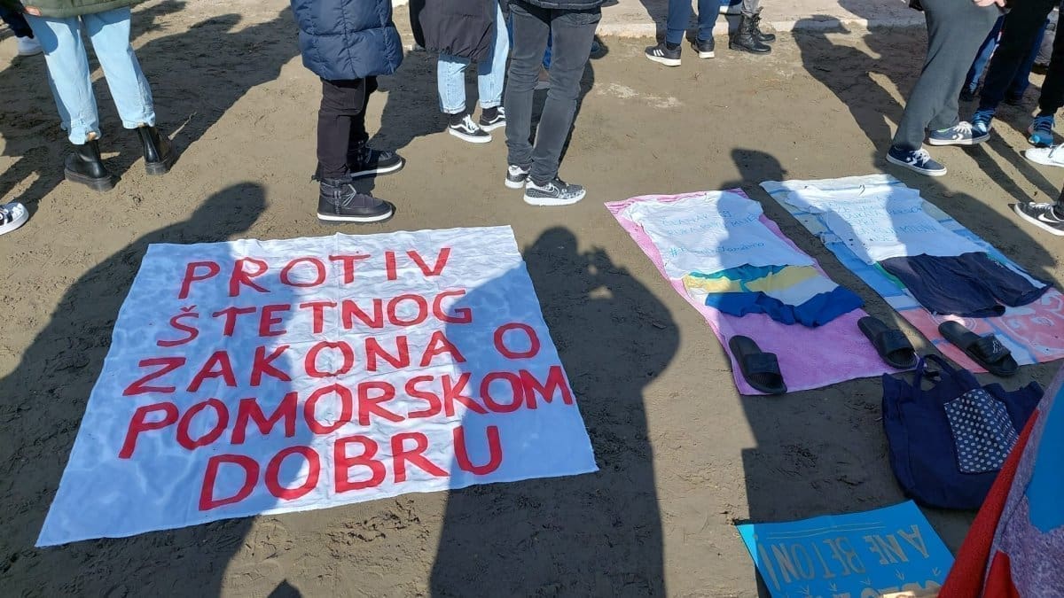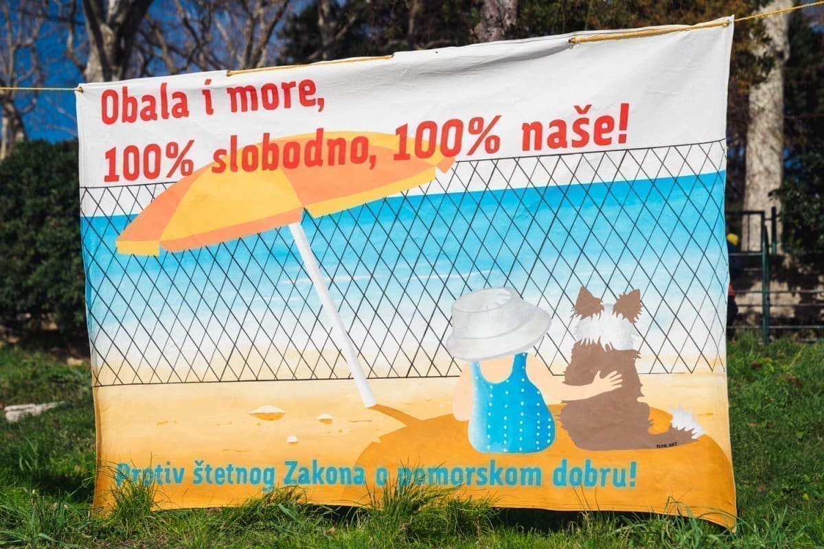 "Protiv štetnog zakona o pomorskom dobru", "Nije ti ćaćino", samo su neki od transparenata na splitskoj plaži.