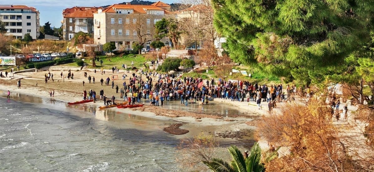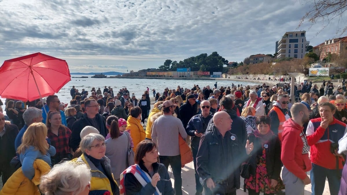 Stotinjak građana okupilo se na splitskoj plaži Bačvice gdje se održava mirno okupljanje građana kojim žele pokazati da su protiv, kako kažu, štetnog prijedloga Zakona o pomorskom dobru i morskim lukama.
