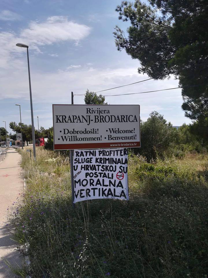 Podsjetimo, uz Zdravka Mamića i njegovog brata Zorana, nepravomoćno je osuđen čelnik HNS-a. Ekipa s Brodarice nije zakinula HNS i "repku" za poruku, pa tako je izvješen transparent podrške i njime. U poruci stoji "Ratni profiteri, sluge kriminala, u Hrvatskoj su postali moralna vertikala" uz prekriženi HNS i potpis BR1950.