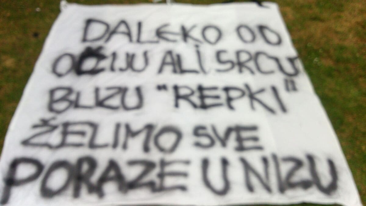 "Daleko od očiju ali srcu blizu 'repki' želimo sve poraze u nizu" - stoji u poruci na transparentu.