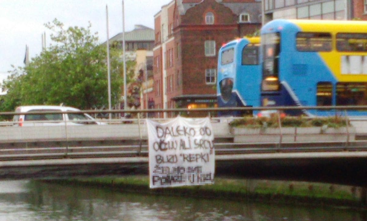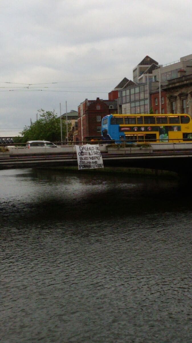 Na redakcijski mail su nam tako stigle fotografije iz Dublina s porukom "podrške" reprezentaciji obješene na jednom dublinskom mostu.