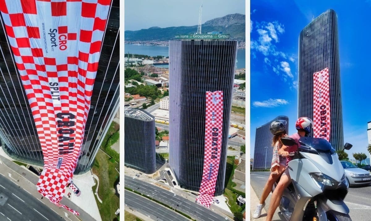 Danas su alpinisti i navijači hrvatske reprezentacije na splitski Dalmatia Tower izvijesili navijačku zastavu hrvatske reprezentacije kao izraz podrške našoj nogometnoj selekciji uoči nadolazećeg Europskog prvenstva u Njemačkoj.