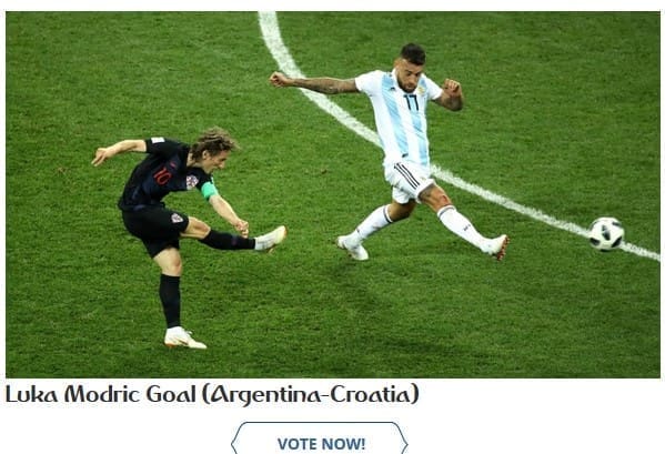 Među 18 pogodaka koji su u konkurenciji gol je i hrvatskog kapetana Luke Modrića protiv Argentine, a glasovati možete ovdje.