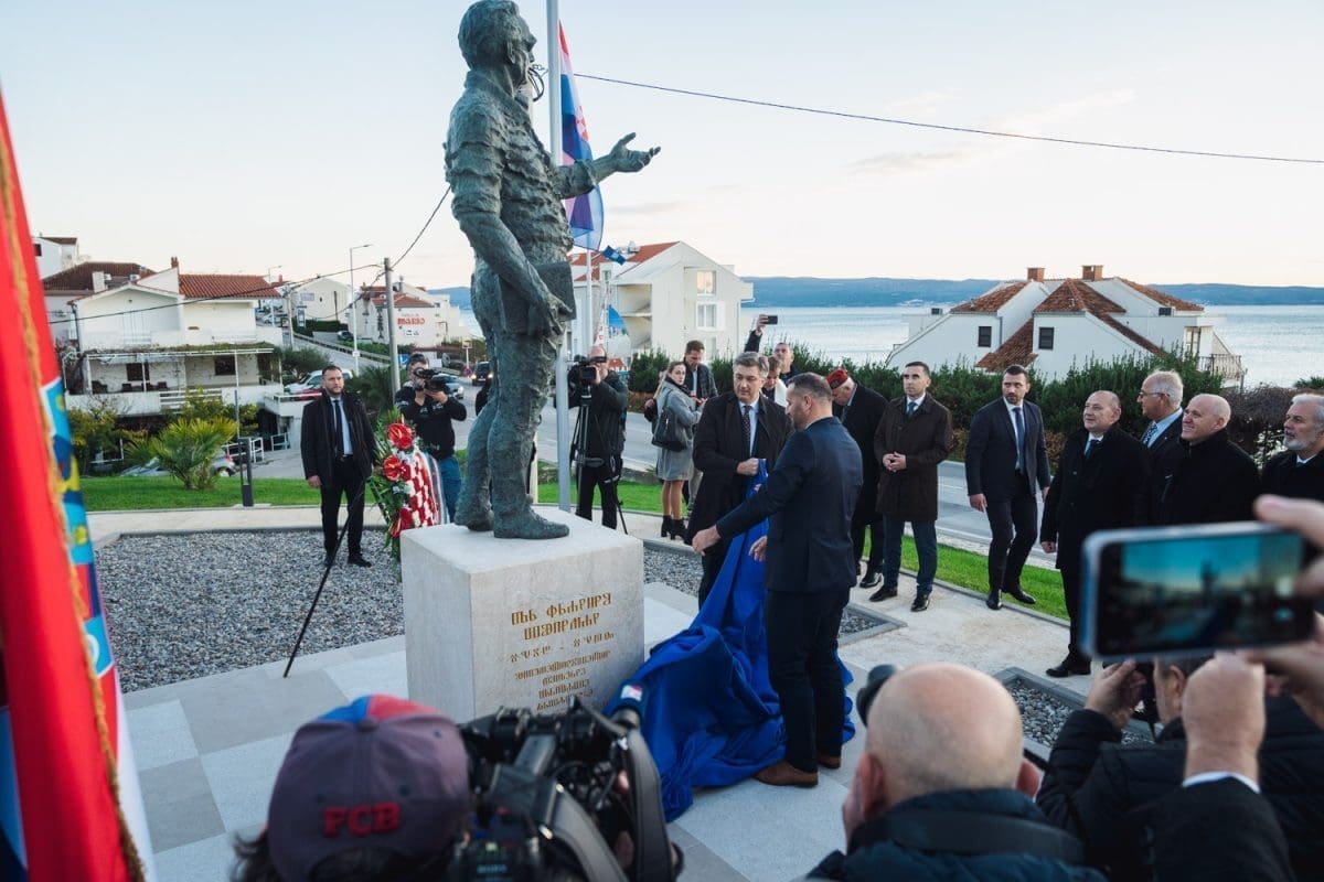 "Okupljeni smo ovdje oko čina visoke kulture i umjetnosti, nacionalnoga ponosa i identiteta, a to je spomenik doktoru Franji Tuđmanu kojega svečano otkrivamo ovdje u Podstrani kao trajan simbol naše i njegove ukupne pobjede", ponosno je govorio Dropuljić.