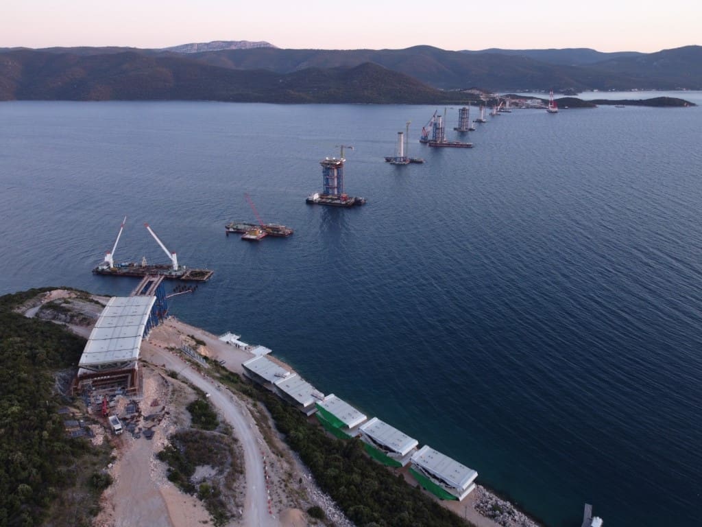 Radovi na izgradnji Pelješkog mosta idu punom parom. Trebao bi biti gotov za godinu i pol dana, a bit će dug 2,4 kilometra i visok 55 metara.