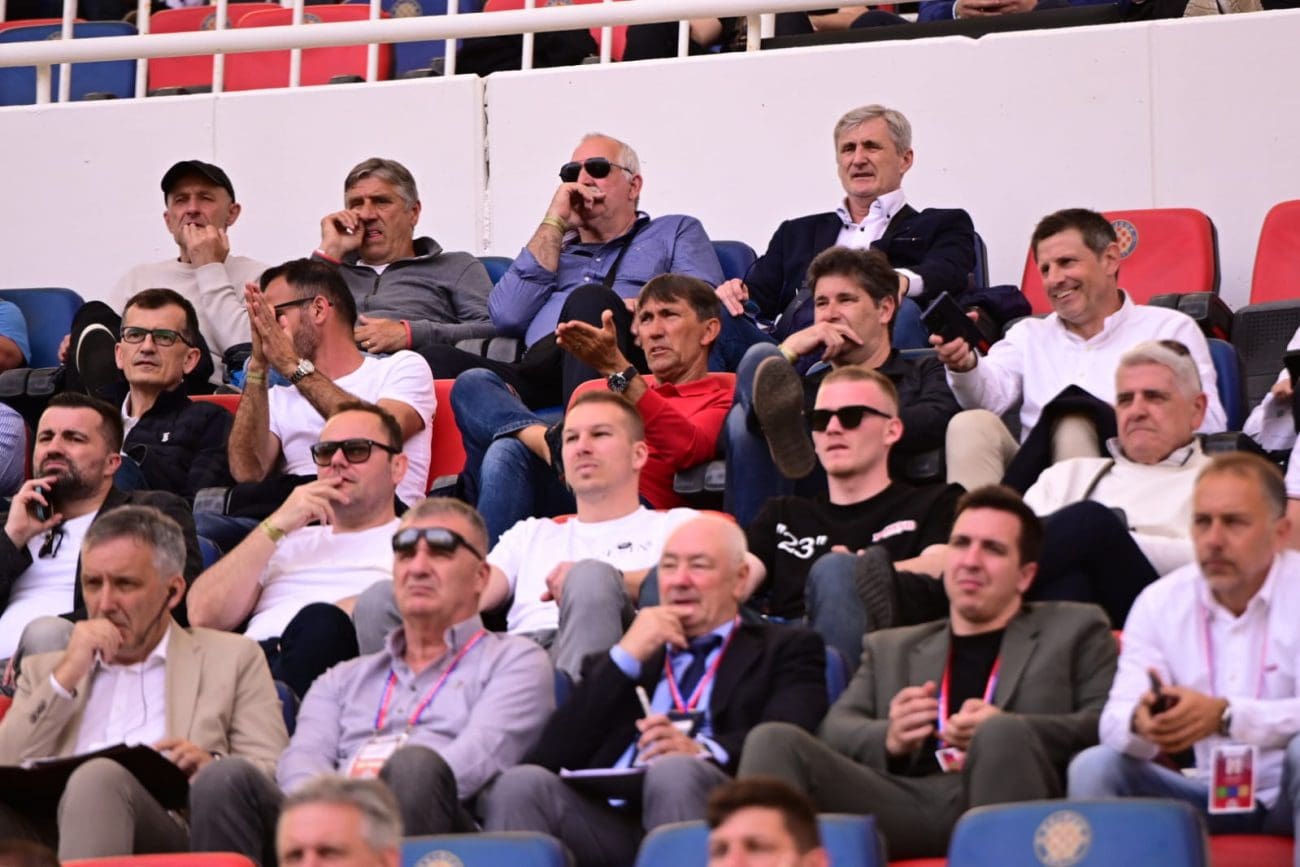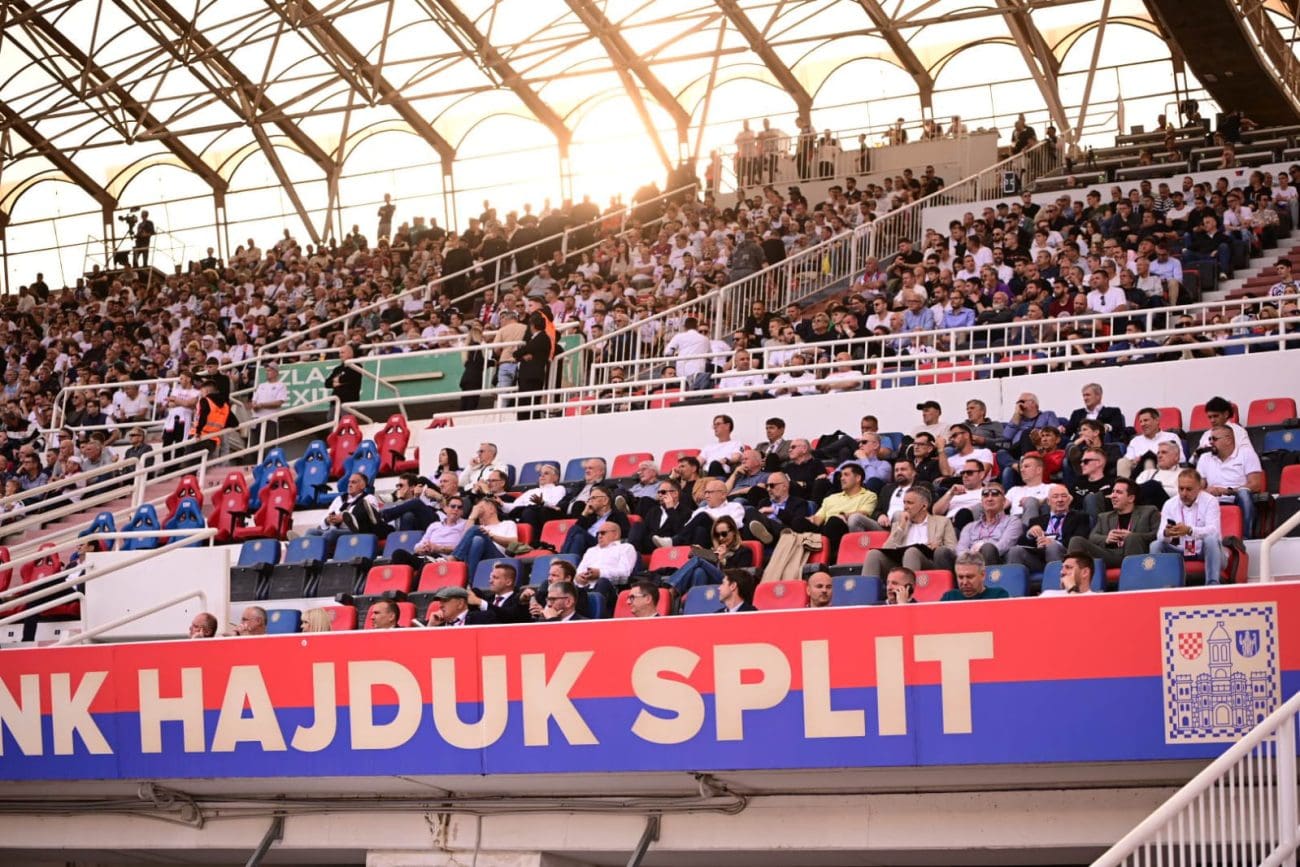 Na utakmici između Hajduka i Iste na Poljudu, svečana loža ispunjena je brojnim poznatim osobama iz svijeta nogometa i šire javnosti.
