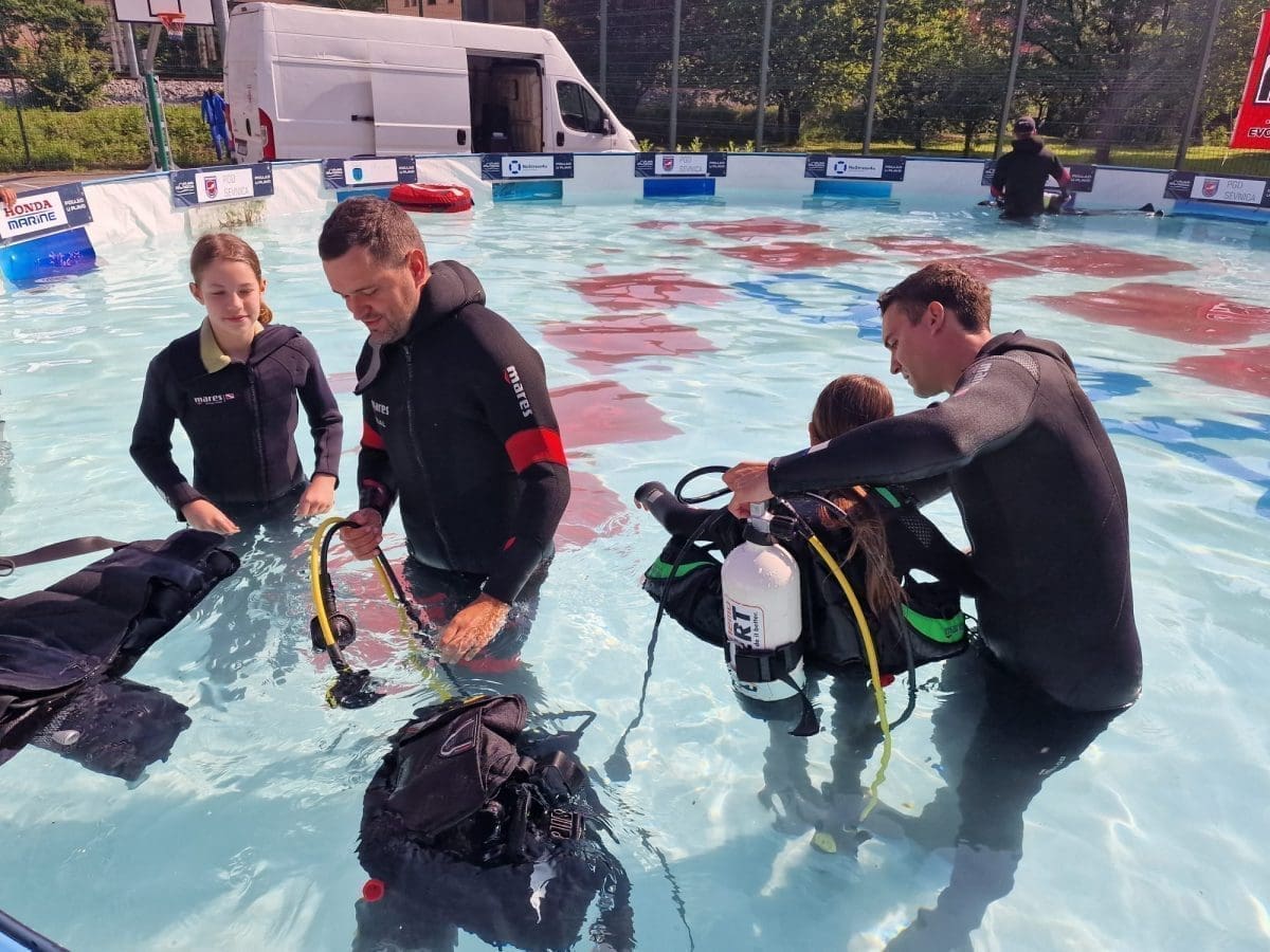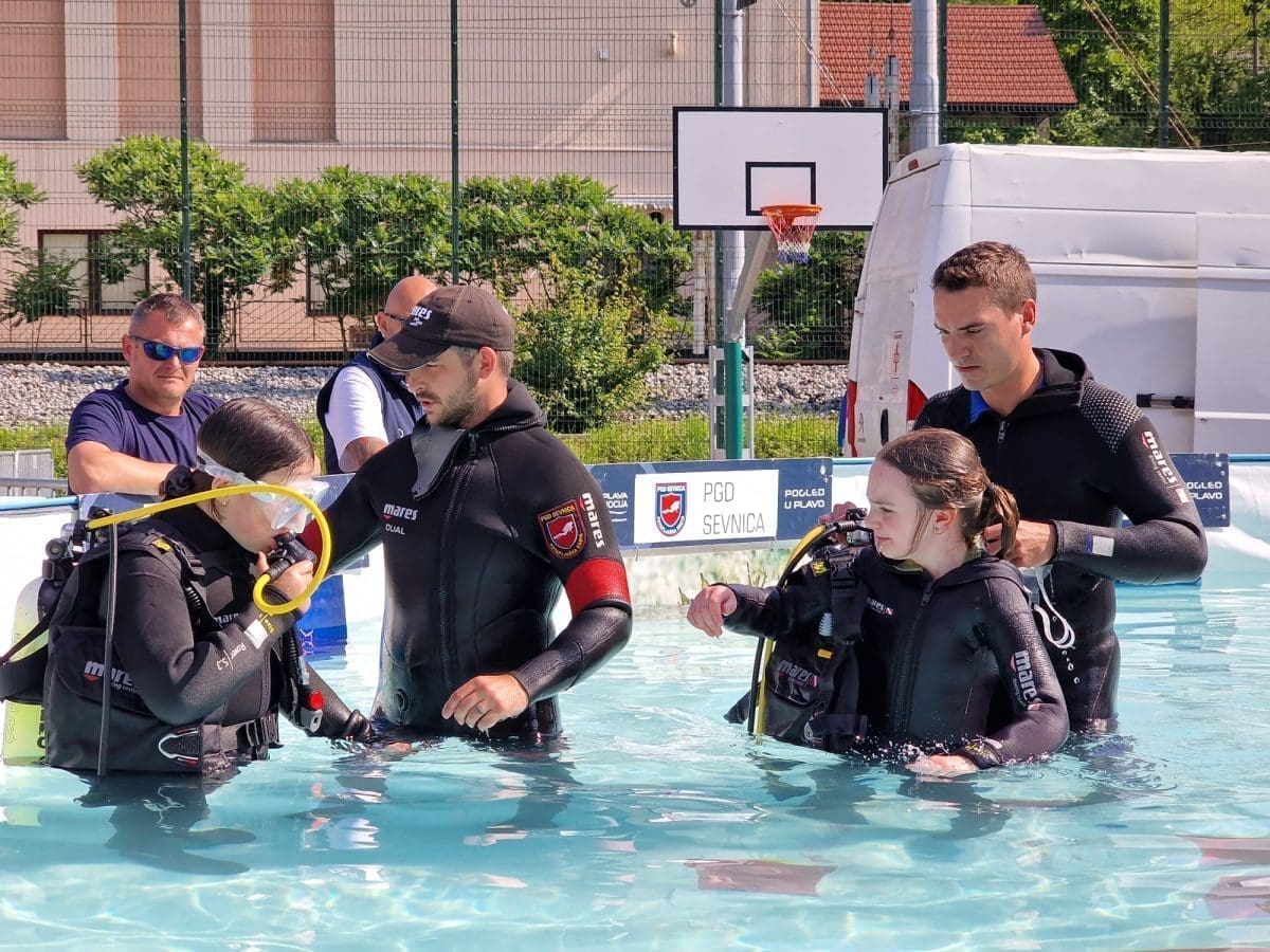 Djeca i ronioci početnici savladavali su osnovne tehnike i vještine ronjenja pod stručnim vodstvom ronioca vatrogasne enote PGD Sevnica, ronioca ronilačkog tima Pogleda u plavo uz podršku Ronilačkog kluba HRVI Nemo-Adriatic.