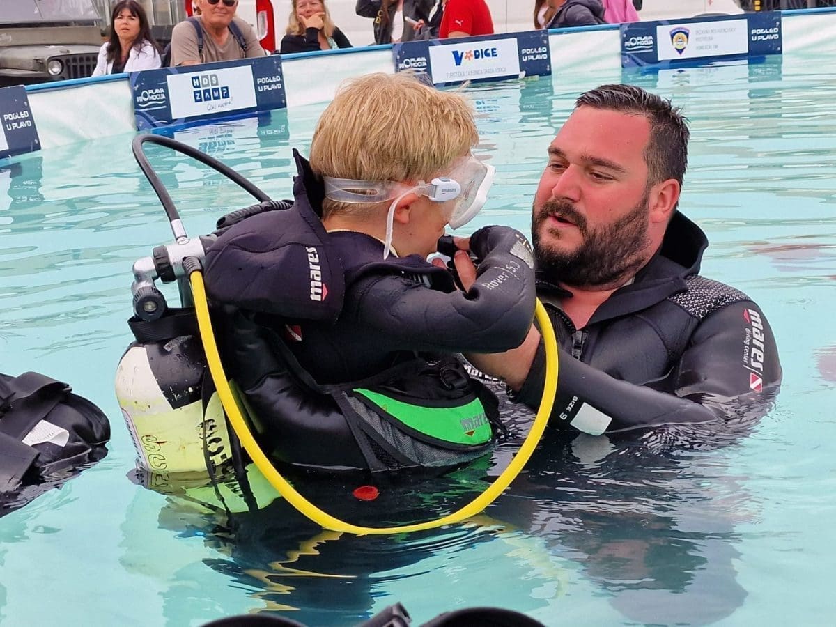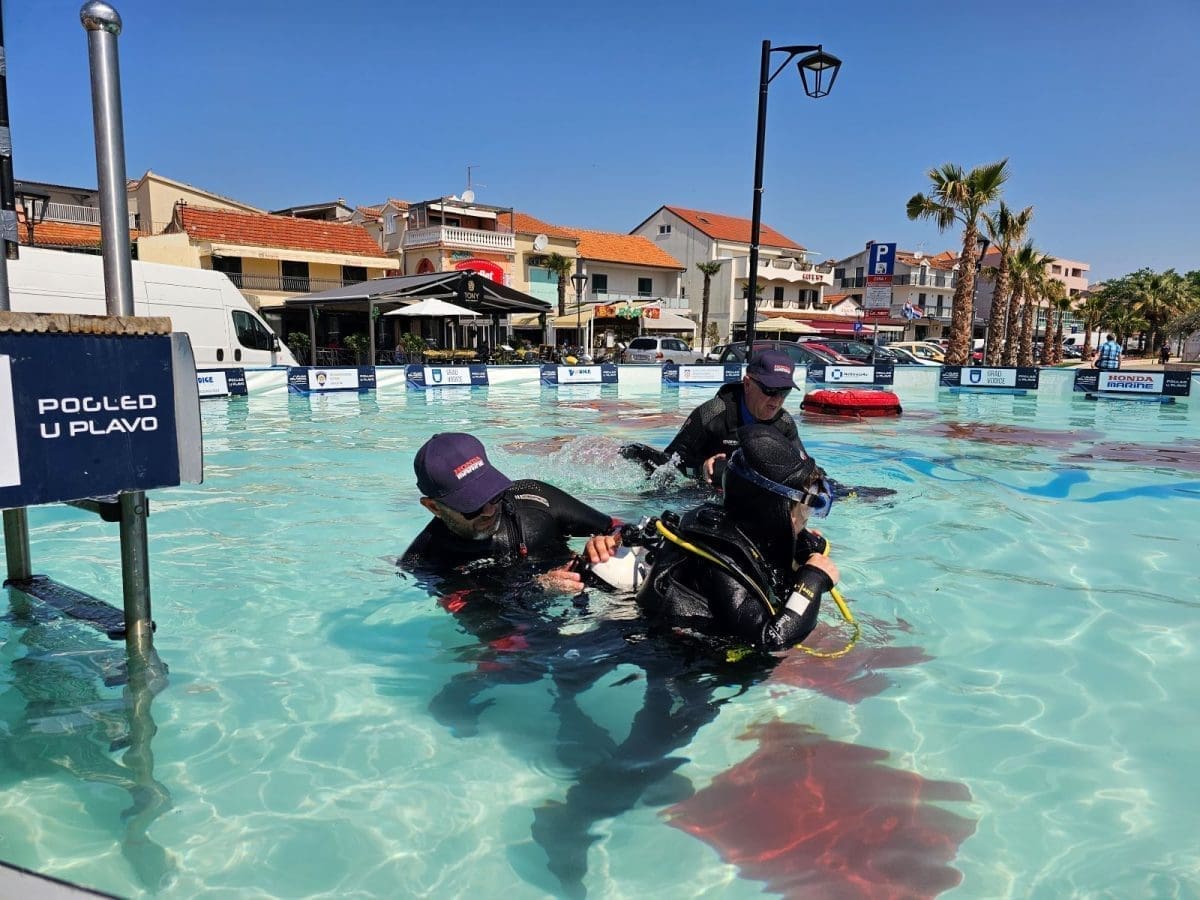 Više od dvije stotine posjetitelja tijekom ovog vikenda imalo je priliku spoznati čari i ljepote ronjenja s punom ronilačkom opremom u potpuno kontroliranim i sigurnim uvjetima prepoznatljivog montažnog desetmetarskog bazena Pogled u plavo koji je bio montiran na prelijepoj vodičkoj rivi uz podršku Grada Vodica, Turističke zajednice grada Vodica i Agencije Plava promocija.