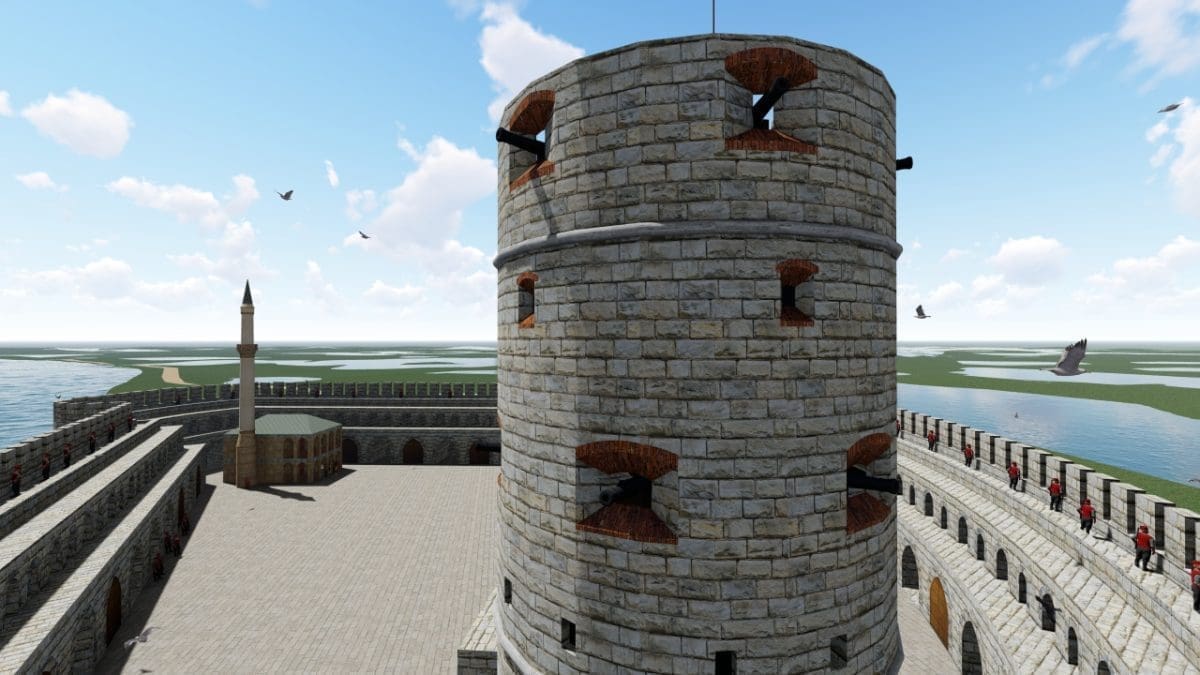 Po opisu Evije Čelebije kula je bila visoka 7 katova, a imala je džamiju, čuvale su je tri lađe: