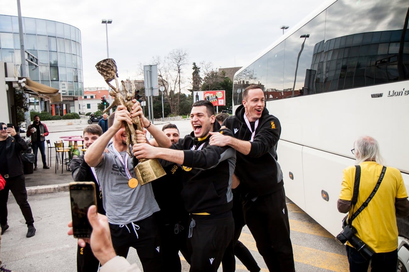 Puno je srca danas na Gripama, najvjerniji navijači dočekali su momčad "žutih" koja se okićena medaljama sa vratila iz Zaboka. Mnoštvo poklonika svih generacija zapjevalo je uz Alena Nižetića i Matka i Branu.