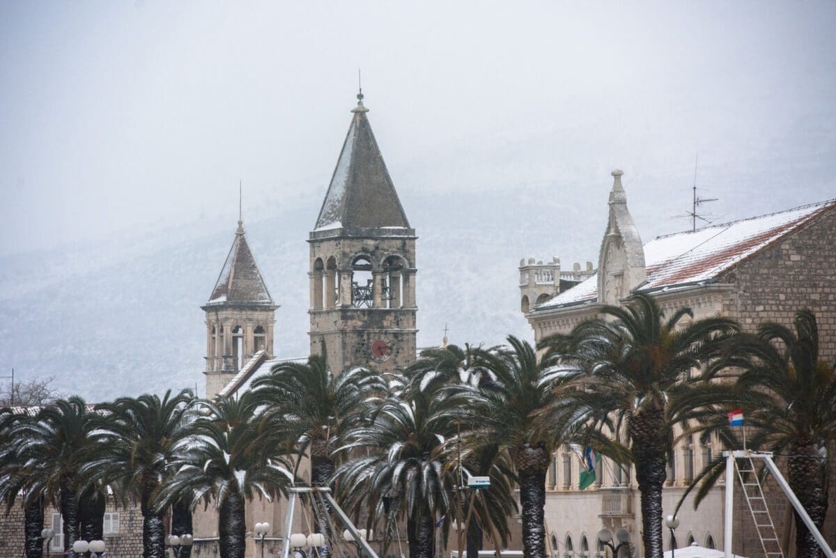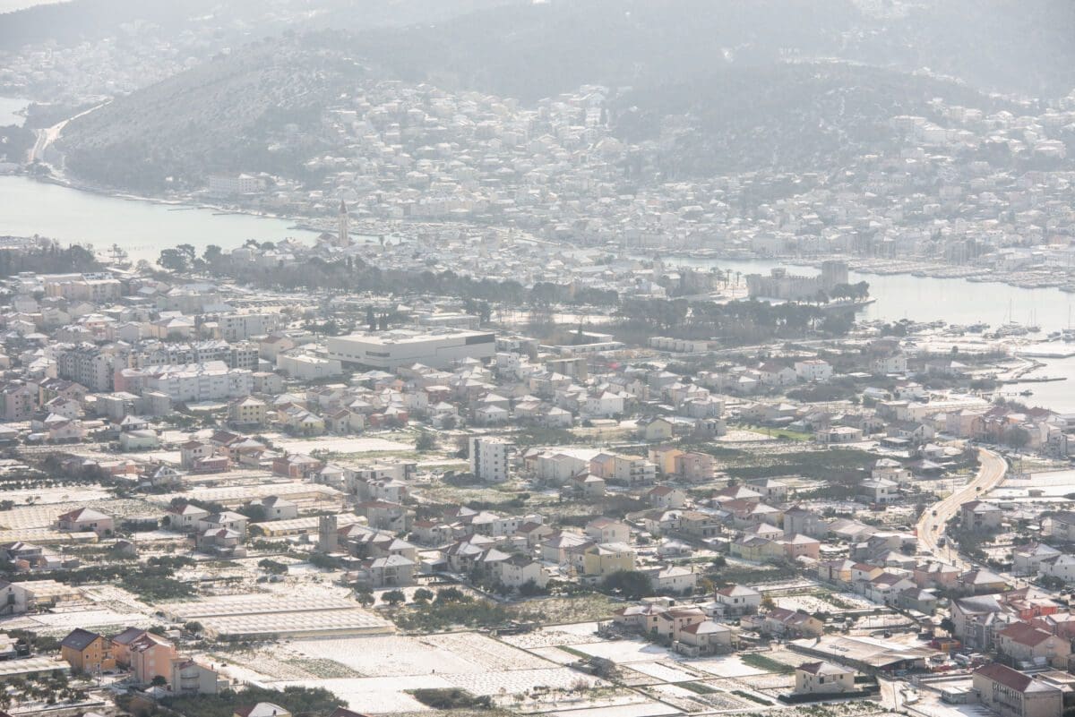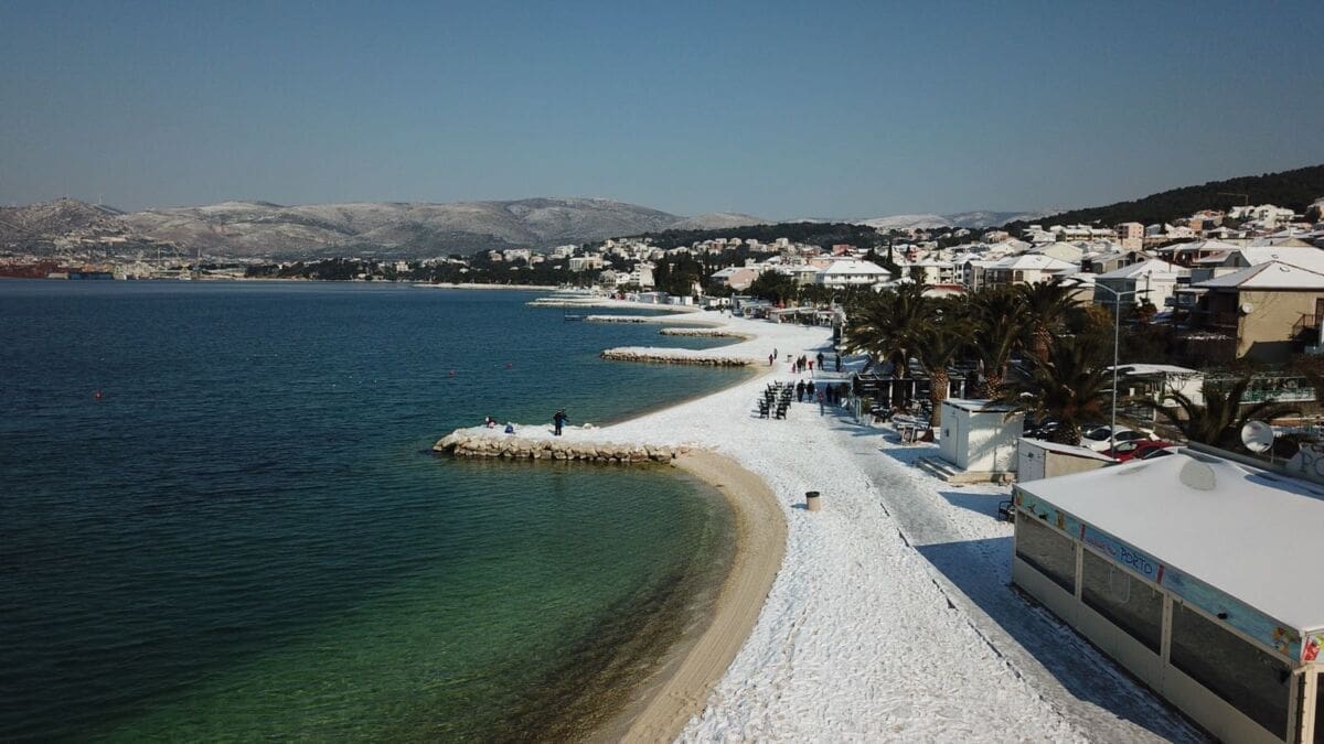 Na širem splitskom području najviše snijega je palo na području Trogira, trogirske Zagore, Čiova, Drvenika i Šolte.