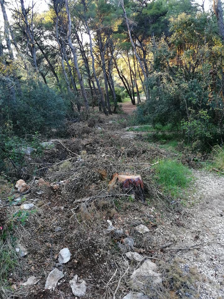 Čitatelj također navodi da su razoreni brojni suhozidi u okolici protupožarnog puta. Putevi su djelomično popločani njihovim ostacima.