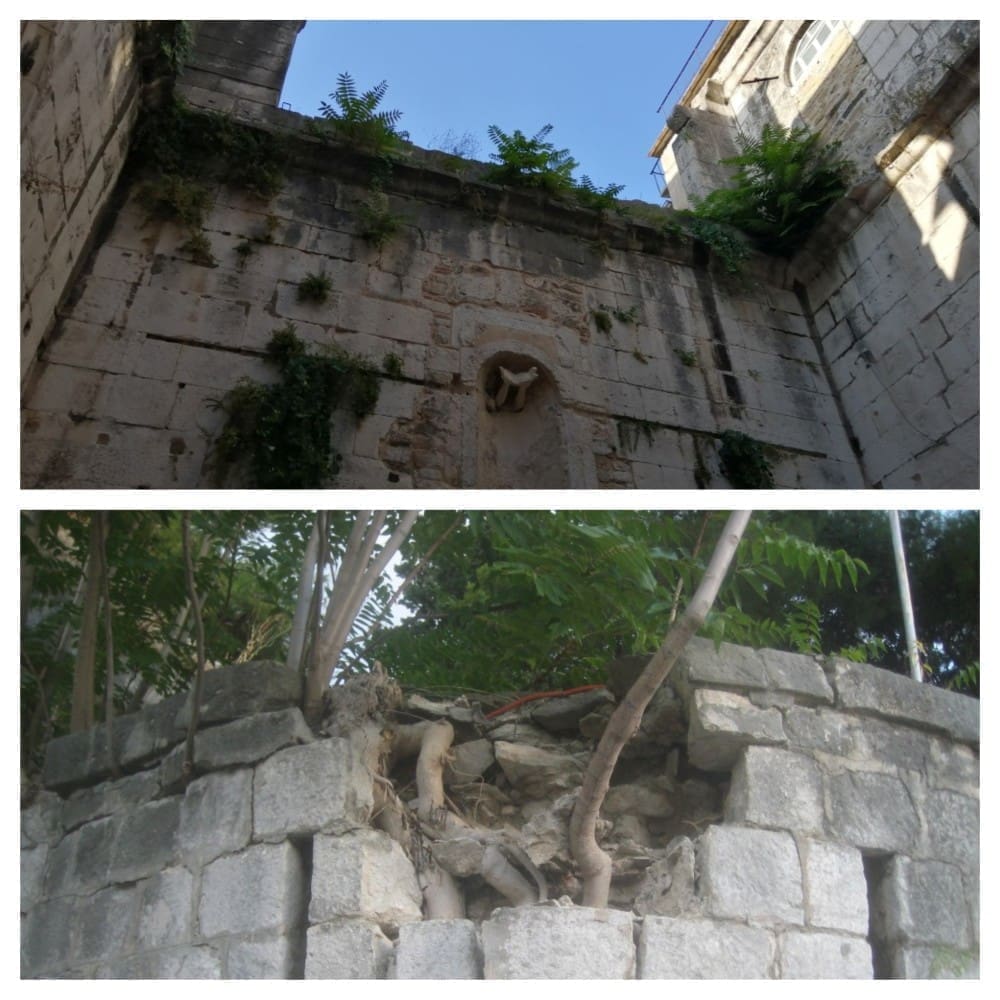 Stoga je važno da komunalna služba grada Splita u suradnji s konzervatorima poduzme što hitnije mjere za njihovo uklanjanje dok su relativno mali (poznato je da pajasen raste u vis brzinom od oko 1-2 m godišnje). Njihovo potpuno vađenje s korijenom je jedini način da se spriječe veća oštećenja na inače dobro očuvanim zidinama palače.