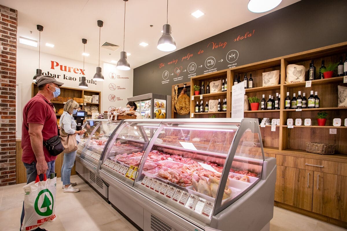 Osim primamljivih cijena, očekuju vas: svježa riba, školjke, rakovi kao i svježe pureće i pileće meso, 100% hrvatske proizvodnje, bez hormona, antibiotika, GMO-a i kokcidiostatika.
