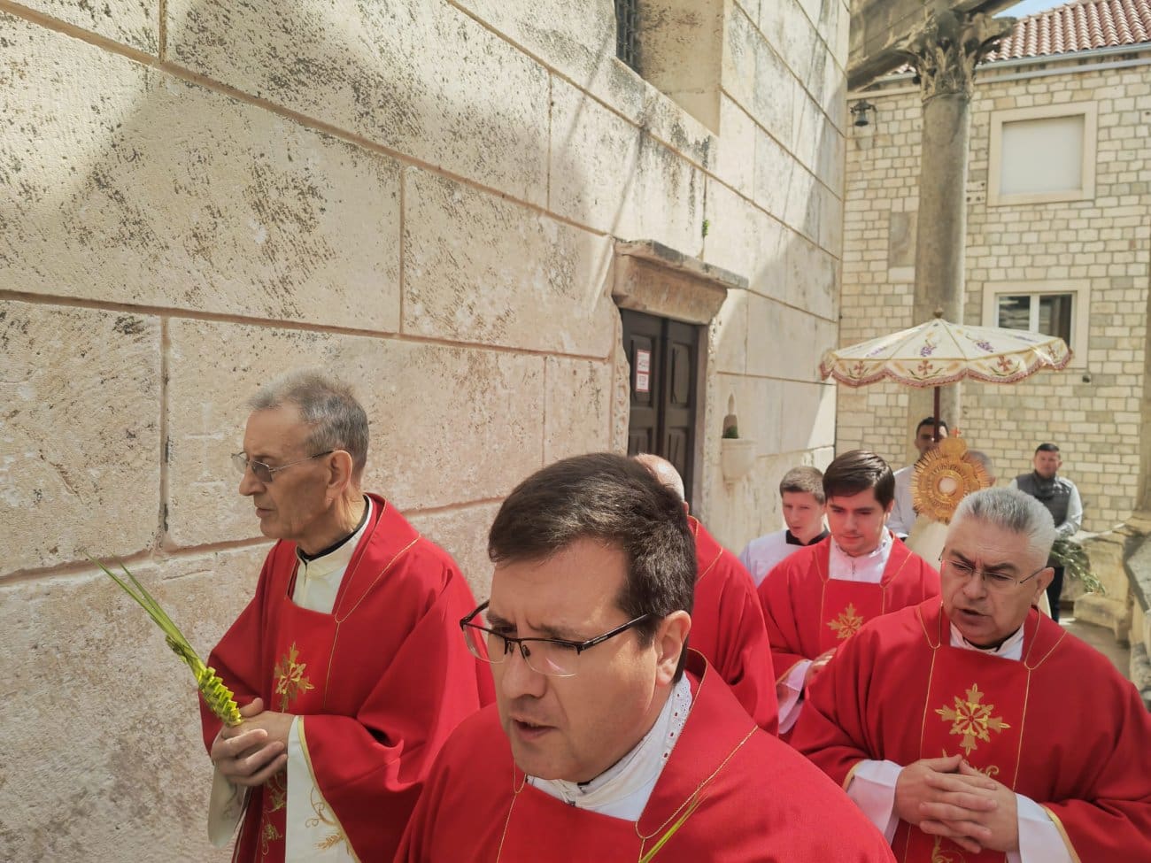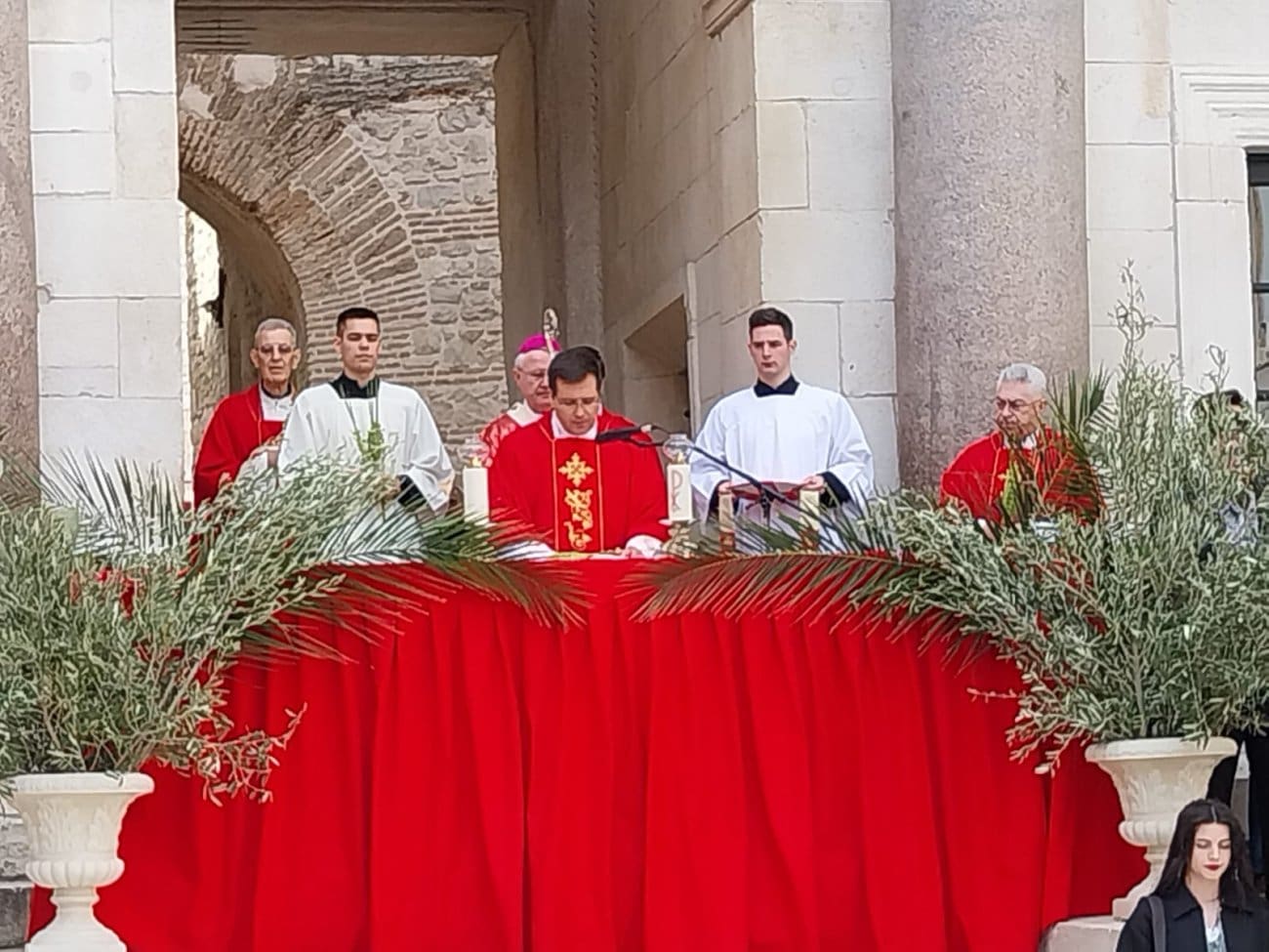 Središnje misno slavlje predvodio je splitsko-makarski nadbiskup mons. Zdenko Križić. Prije početka euharistije, nadbiskup je ispred katedrale blagoslovio maslinove grančice – simbol mira, nade i vjernosti – koje vjernici tradicionalno nose kao znak Isusova svečanog ulaska u Jeruzalem.
